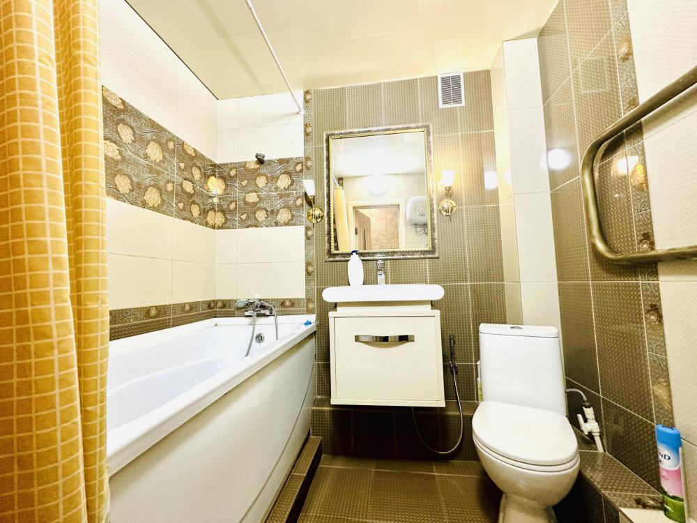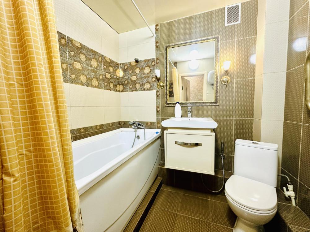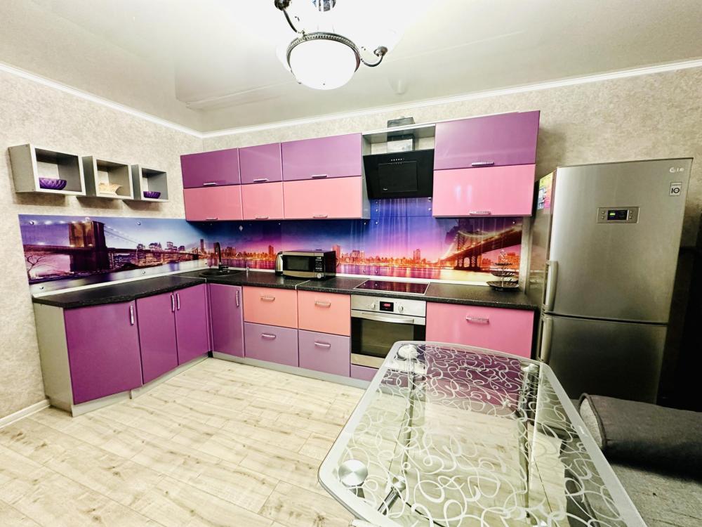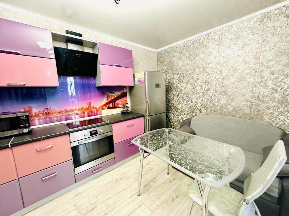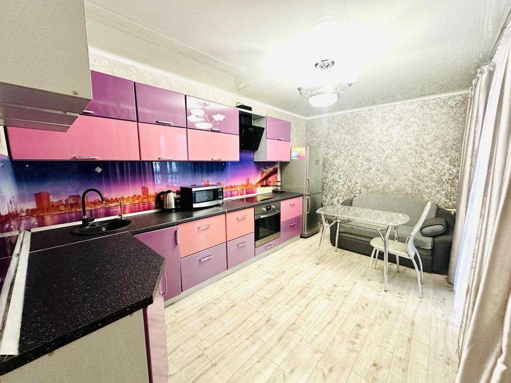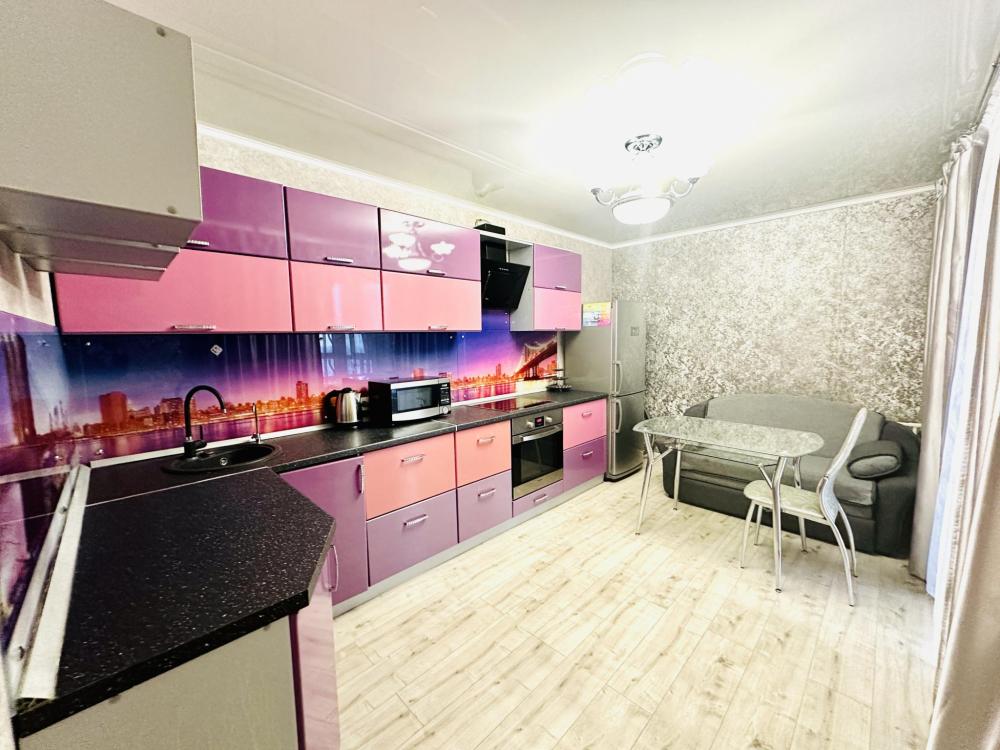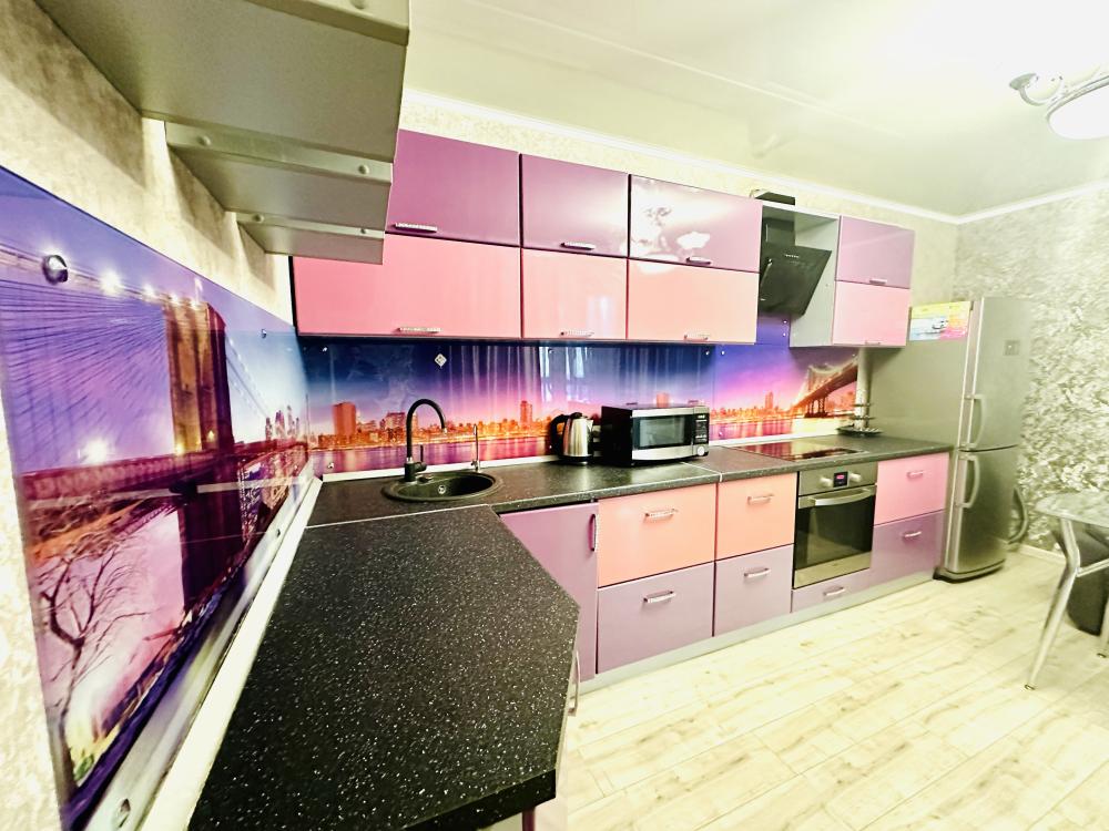 Квартира категории люкс расположена в центре города в районе автовокзала и площади Партизан, на 11 этаже с видом на город с балкона, с панорамным остеклением. Дорогой дизайнерский ремонт, удобная мебель, чистое постельное белье и полотенца, уют домашней обстановки, все это заставляет вернуться в апартаменты снова. В комнате расположен спальный гарнитур с двуспальной кроватью и прикроватными тумбочками. Камин создает неповторимую обстановку. В распоряжении гостей телевизор с возможностью просмотра в качестве 3D. К услугам гостей: кондиционер, интернет Wi-Fi, бойлер (в случае планового отключения воды). В квартире есть балкон с панорамными окнами, на котором есть мебель (столик и два стульчика), вы сможете насладиться видом и выпить чашечку кофе прямо на свежем воздухе. Просторная кухня оборудована качественной техникой.
