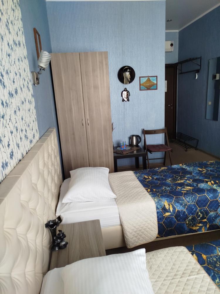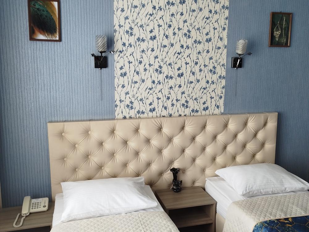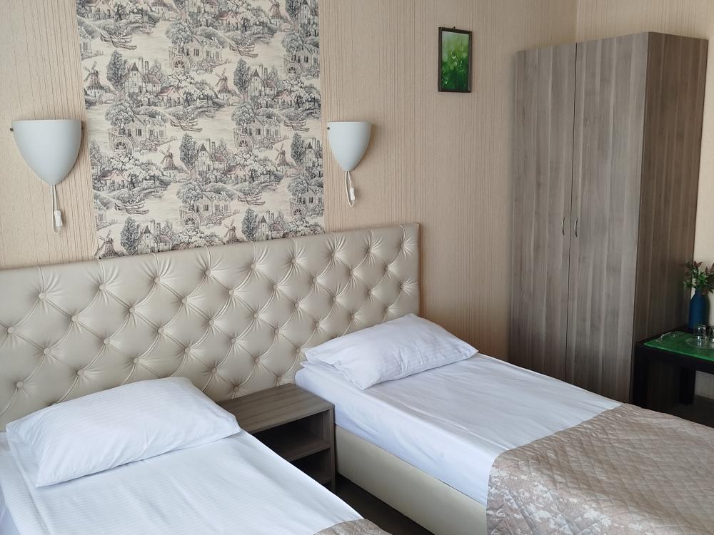 В номере: Две 1,5 сп. кровати или одна двуспальная, плоский телевизор, душевая кабина, прикроватные тумбочки, кабельное телевидение, раковина шкаф, система климат — контроля, туалет комод, настольная лампа, 4 полотенца журнальный столик, холодильник, коврик для ног стул.