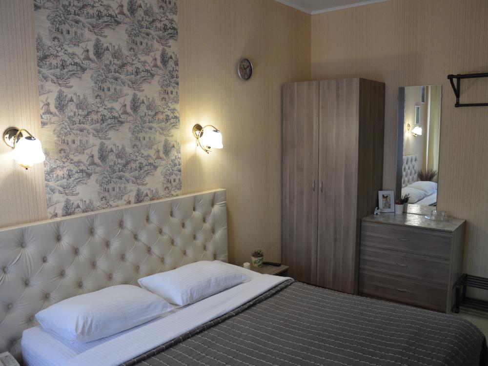В номере: двуспальная кровать, плоский телевизор, душевая кабина, прикроватные тумбочки, кабельное телевидение, раковина шкаф, система климат — контроля, туалет комод, настольная лампа, 2 полотенца журнальный столик, коврик для ног стул.