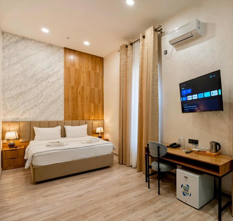 Двухместный номер с кроватью размера «king-size», бесплатными туалетно-косметическими принадлежностями и халатами, а также собственной ванной комнатой с душем и феном. Просторный двухместный номер с 1 кроватью, отдельным входом, звуконепроницаемыми стенами, мини-баром и видом на город оснащен кондиционером и телевизором с плоским экраном и кабельными каналами.
