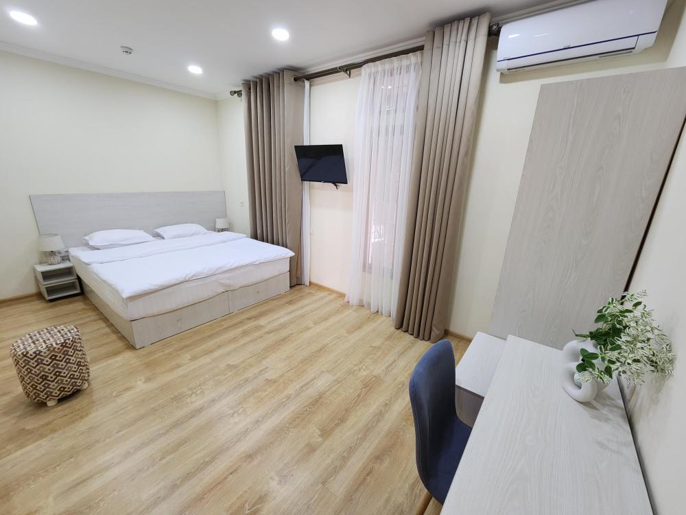 Номер оснащен следующими удобствами: кондиционер, тумба, шкаф, холодильник, телевизор, туалетные принадлежности, зеркало, душ.