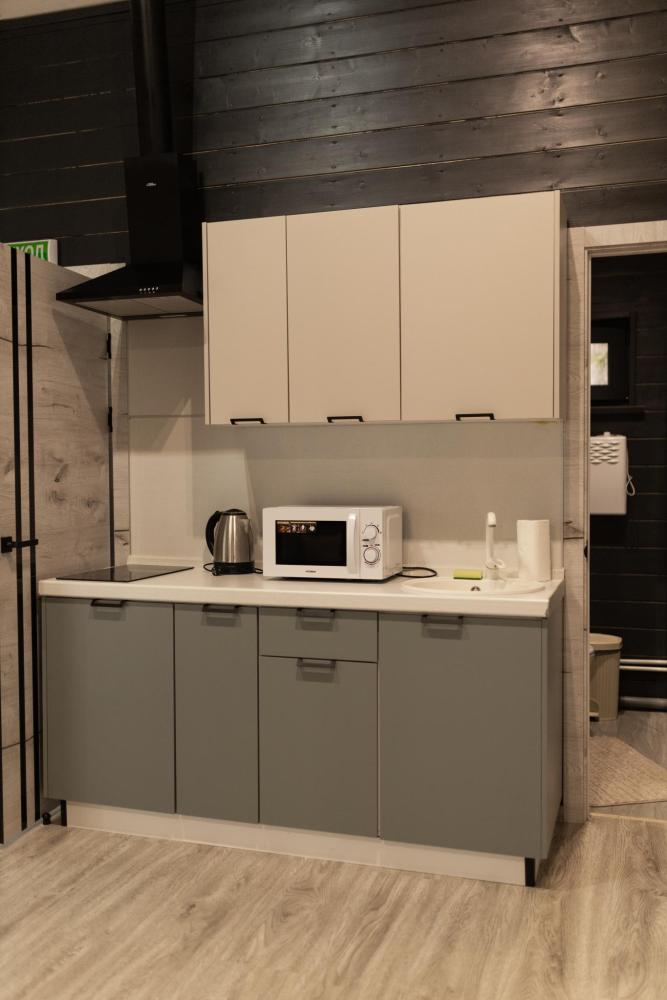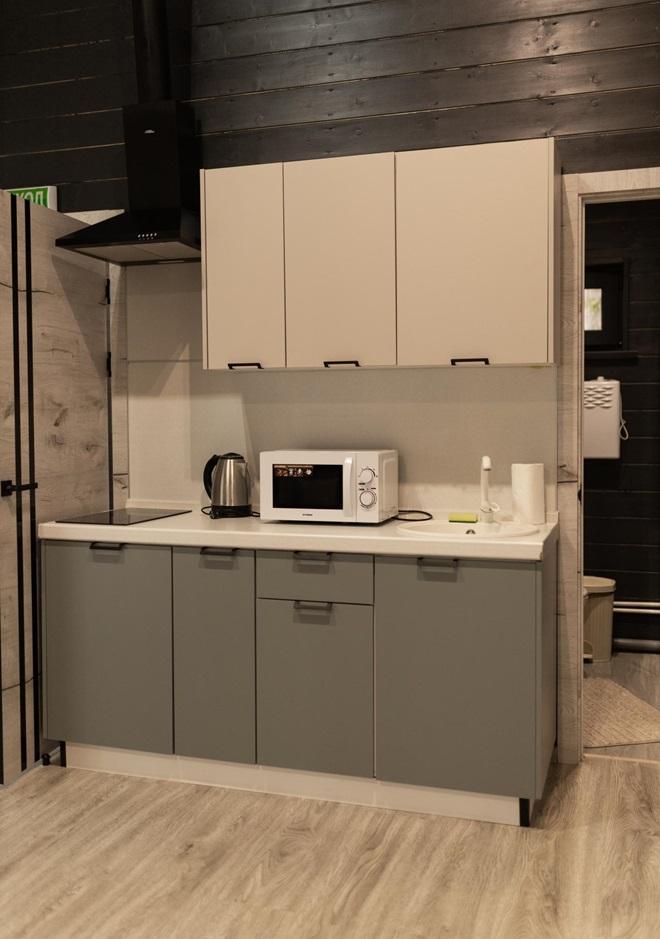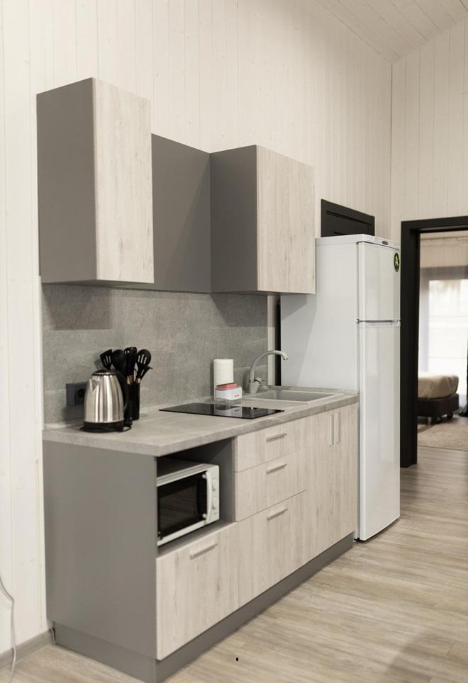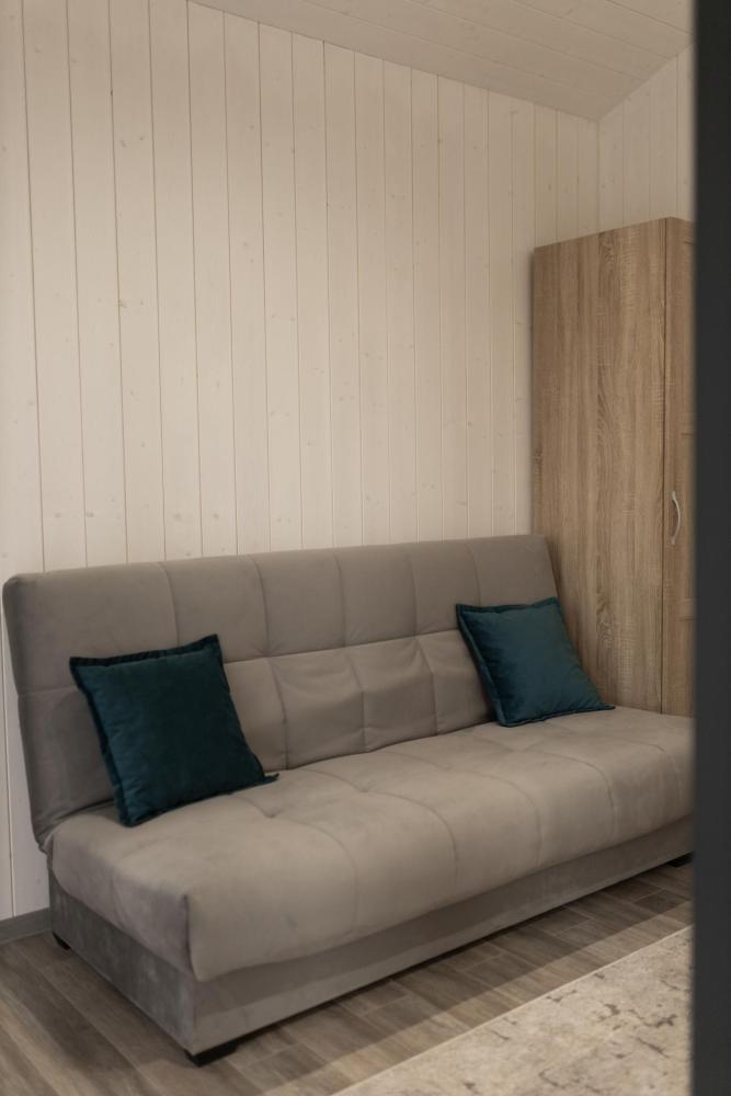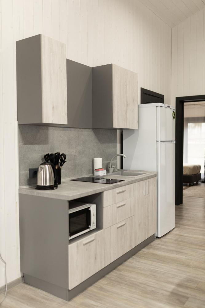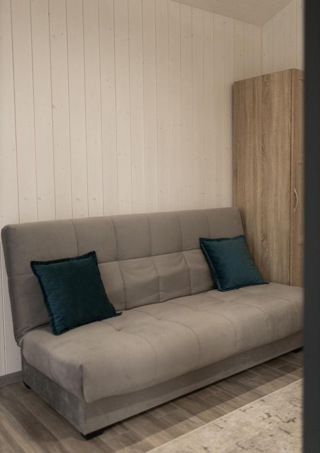 Уютный коттедж общей площадью 29 кв.м. для размещения до 4-х гостей (с учетом дополнительного места). Гости смогут почувствовать дух свободы и единения с природой в этом уютном доме рядом с Окой. Пространство-студия с двуспальной кроватью и большим диваном, телевизором, кондиционером; кухня оснащенная необходимой техникой и посудой (микроволновая печь, электрическая плита, чайник, холодильник); ванная комната с душем, набор полотенец, туалетно-гигиенические принадлежности, фен.
