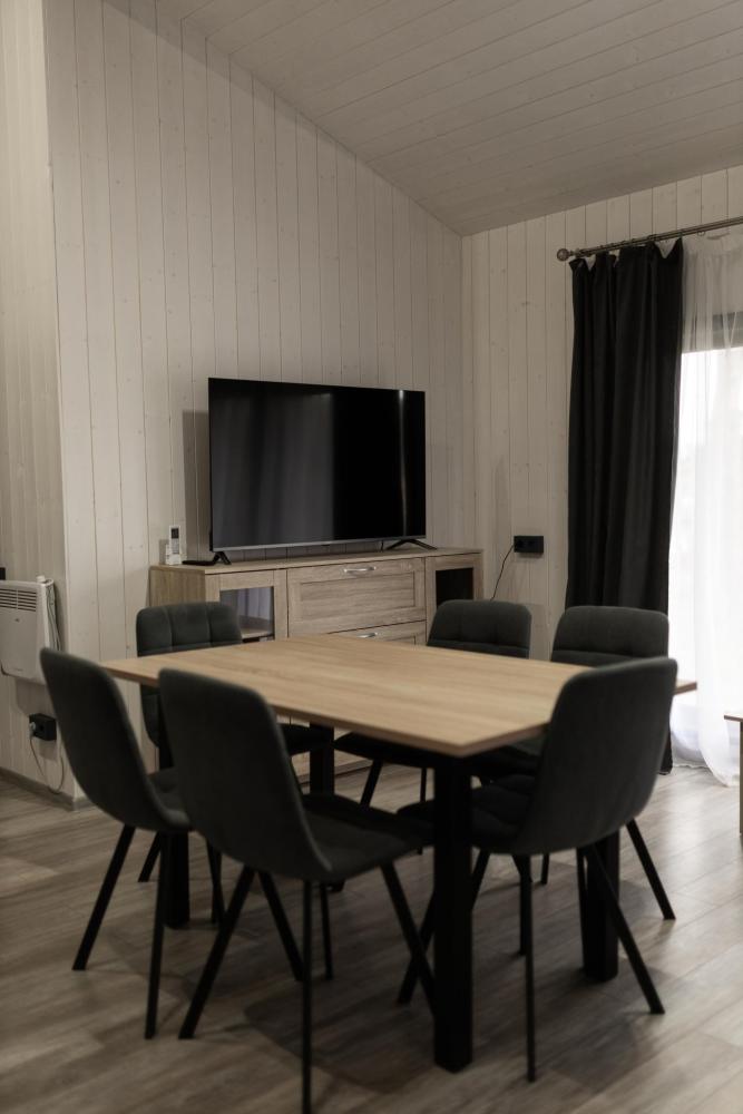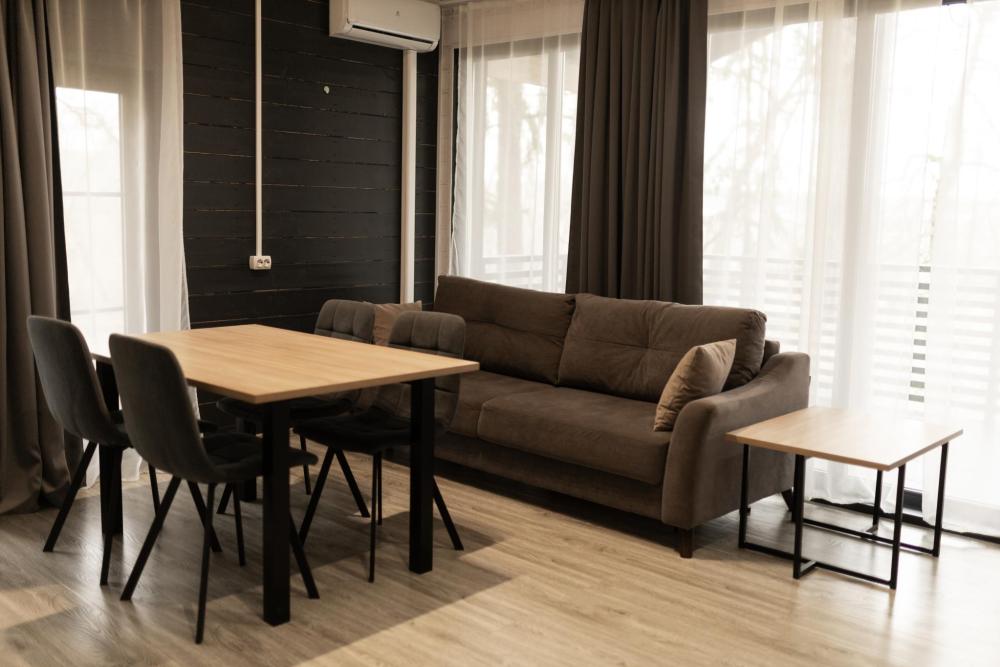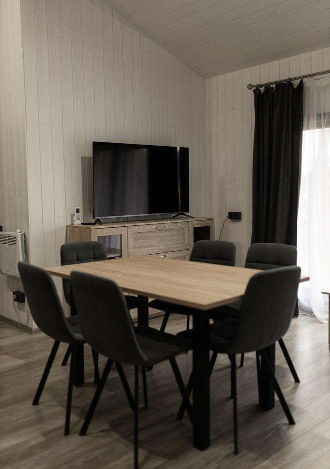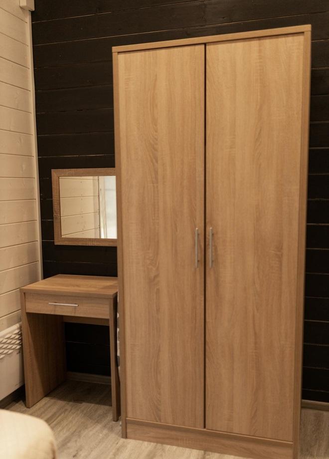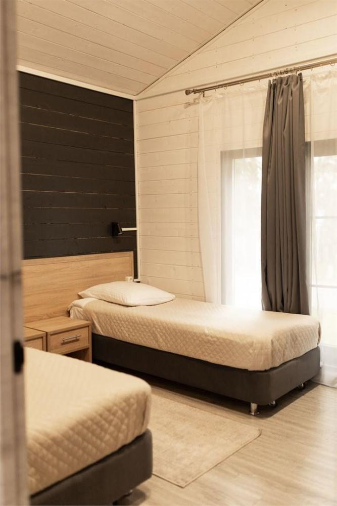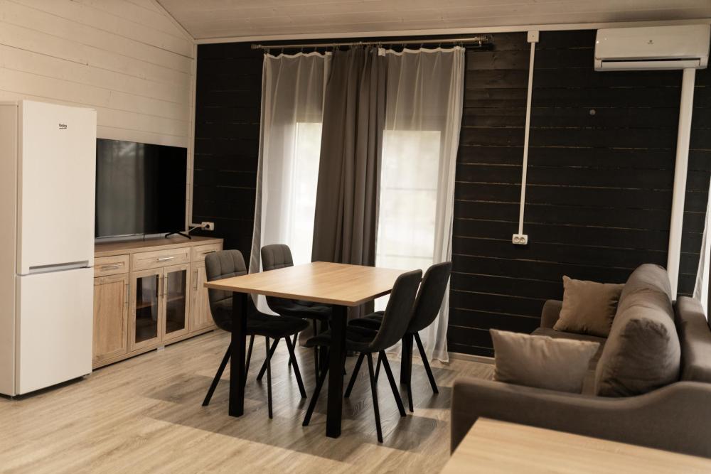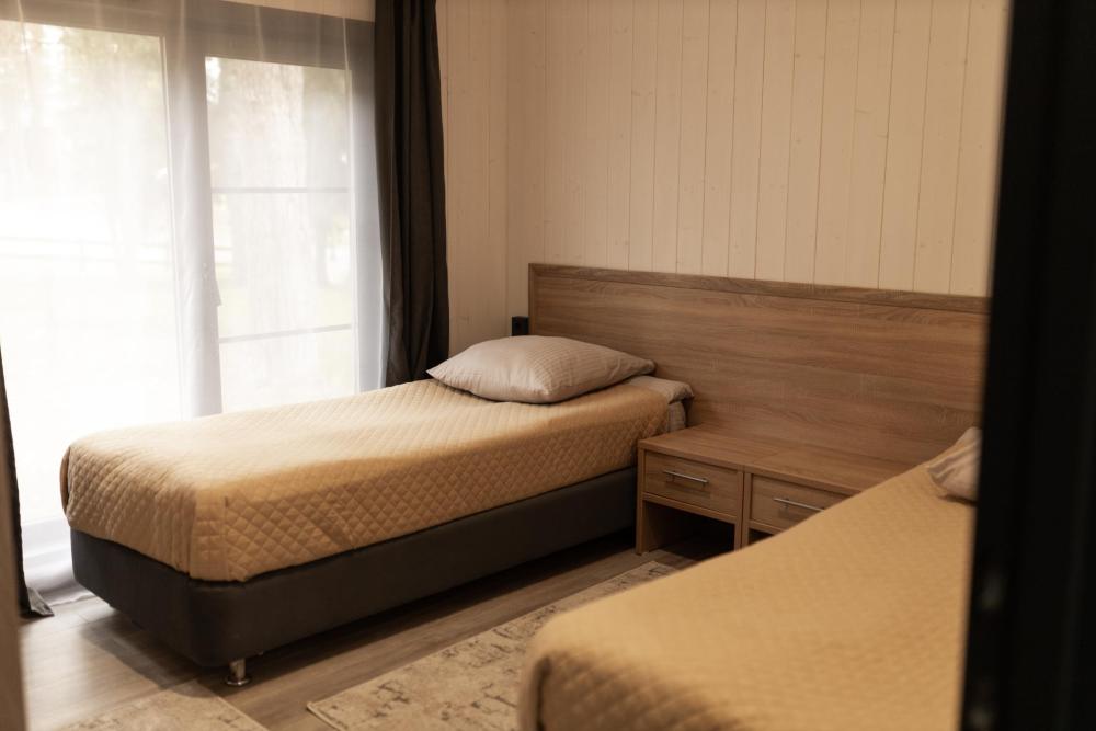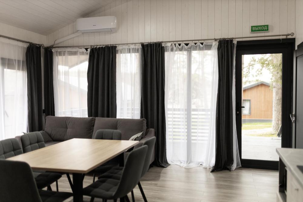 Уютный коттедж в сосновом лесу общей площадью 50 кв.м. для размещения до 6-ти гостей. Здесь пахнет хвоей и счастьем, а из окон — вид, ради которого хочется бросить все и уехать в лес. В доме две спальни с двухспальной кроватью или двумя односпальными в каждой; гостиная с обеденной зонной, диваном, телевизором, кондиционером; кухня оснащенная необходимой техникой и посудой (микроволновая печь, электрическая плита, чайник, холодильник, вытяжка); ванная комната с душем, набор полотенец, туалетно-гигиенические принадлежности, фен.