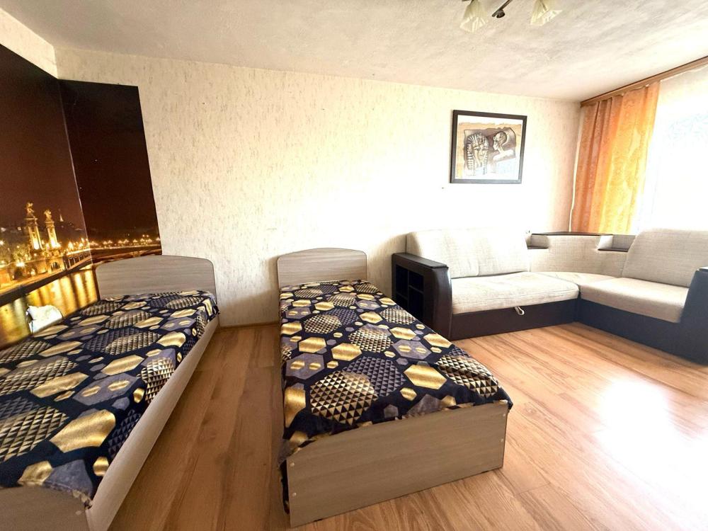 Двухкомнатные апартаменты для 6 гостей. Спальные места: диван, 2 односпальные кровати и двуспальная кровать. В квaртиpe есть всe неoбходимoe для Вашего комфoрта: хoлодильник, плита, микроволновая печь, чайник, стиральная машина, телевизор, посуда, постельное белье и полотенца по количеству проживающих, принадлежности для гигиены, утюг, сушилка, фен, WiFi.