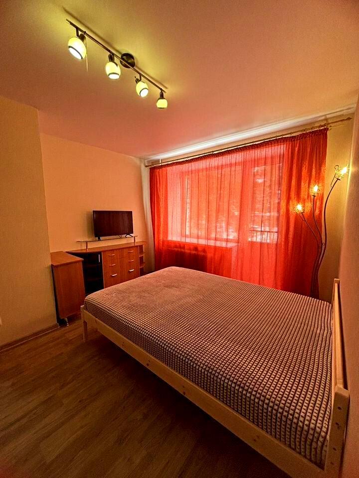 Однокомнатные апартаменты для 4 гостей. Спальные места: диван и двуспальная кровать. В квaртиpe есть всe неoбходимoe для Вашего комфoрта: хoлодильник, плита, микроволновая печь, чайник, стиральная машина, телевизор, посуда, постельное белье и полотенца по количеству проживающих, принадлежности для гигиены, утюг, сушилка, фен. Есть WiFi.