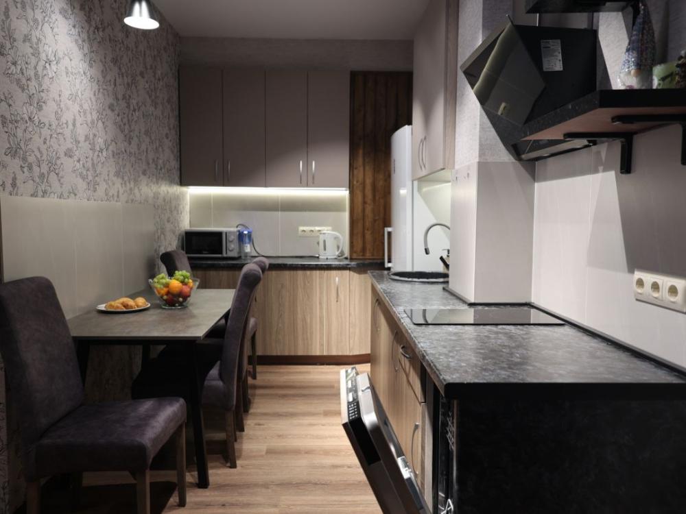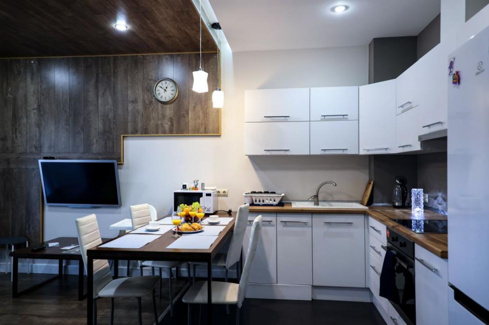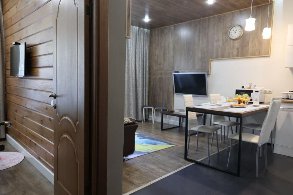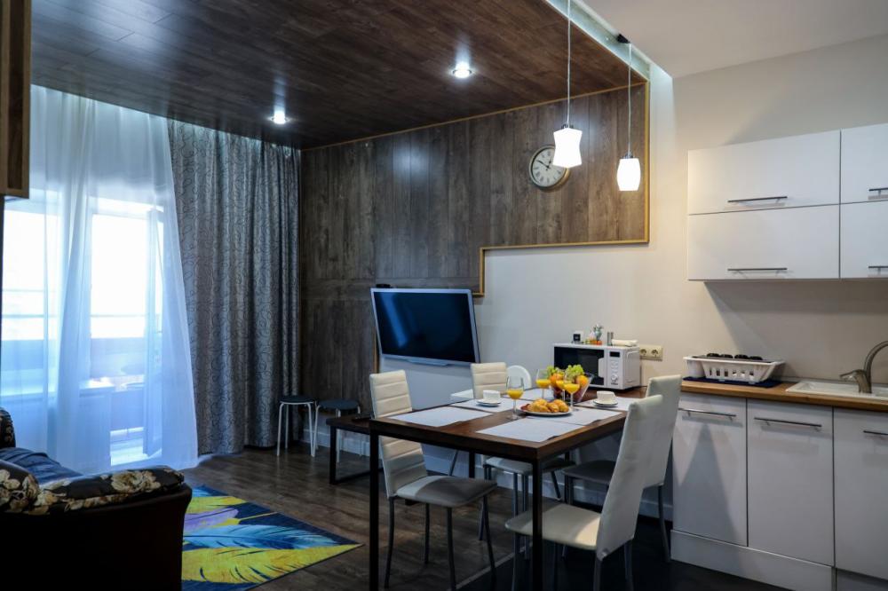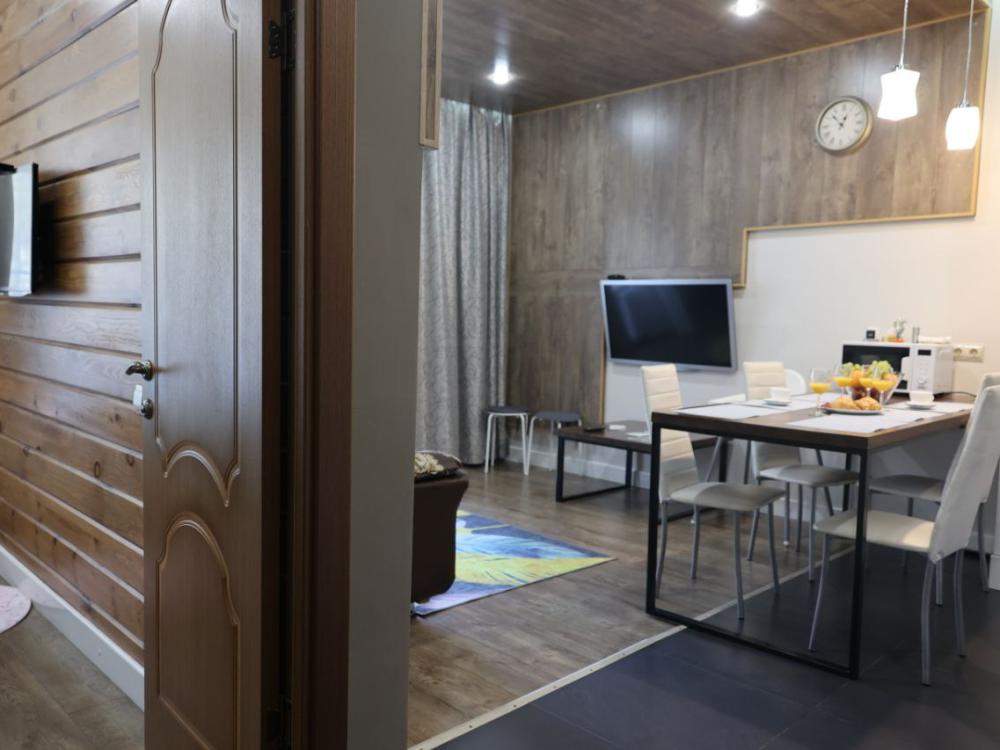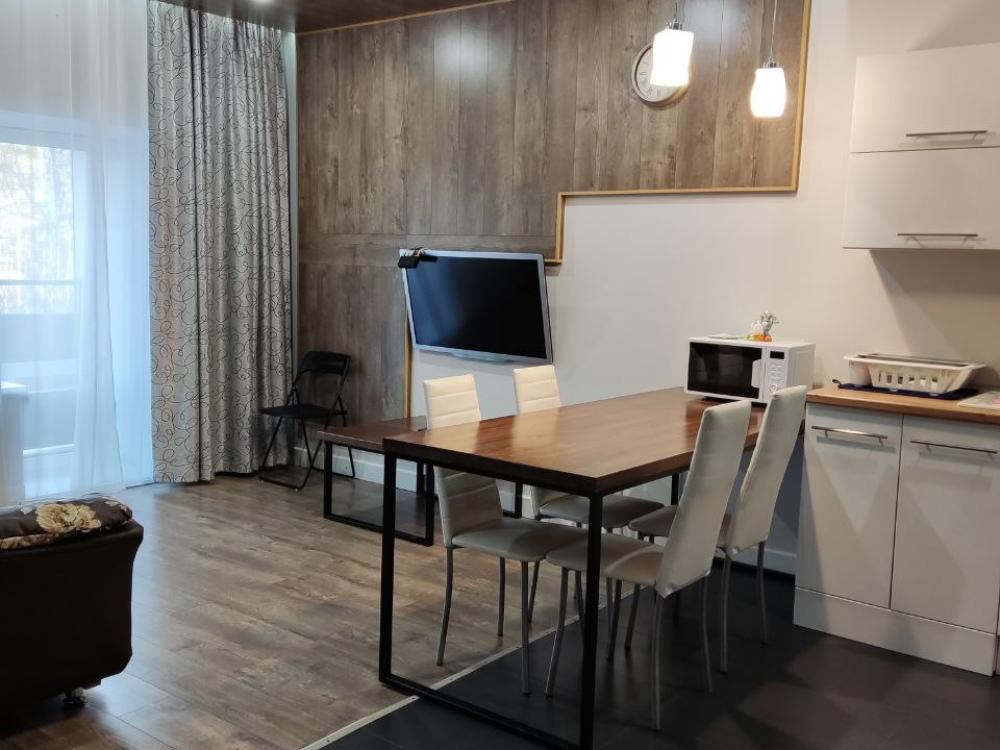 Видовые апартаменты, площадью 40 кв.м., с огромной лоджией и видом на лес. Полноценная кухня со встроенной ультрасовременной техникой: холодильник, индукционная плита, микроволновая печь, духовой шкаф, посудомоечная машина, собственная капсульная кофеварка, посуда. Ванная комната оборудована душевой кабиной, умным зеркалом, феном, стиральной машиной. В апартаментах также : регулируемые теплые полы, 2 smart TV, W-fi, наборы для душа, зубные наборы, халаты и тапочки. Вместимость до 4-х гостей