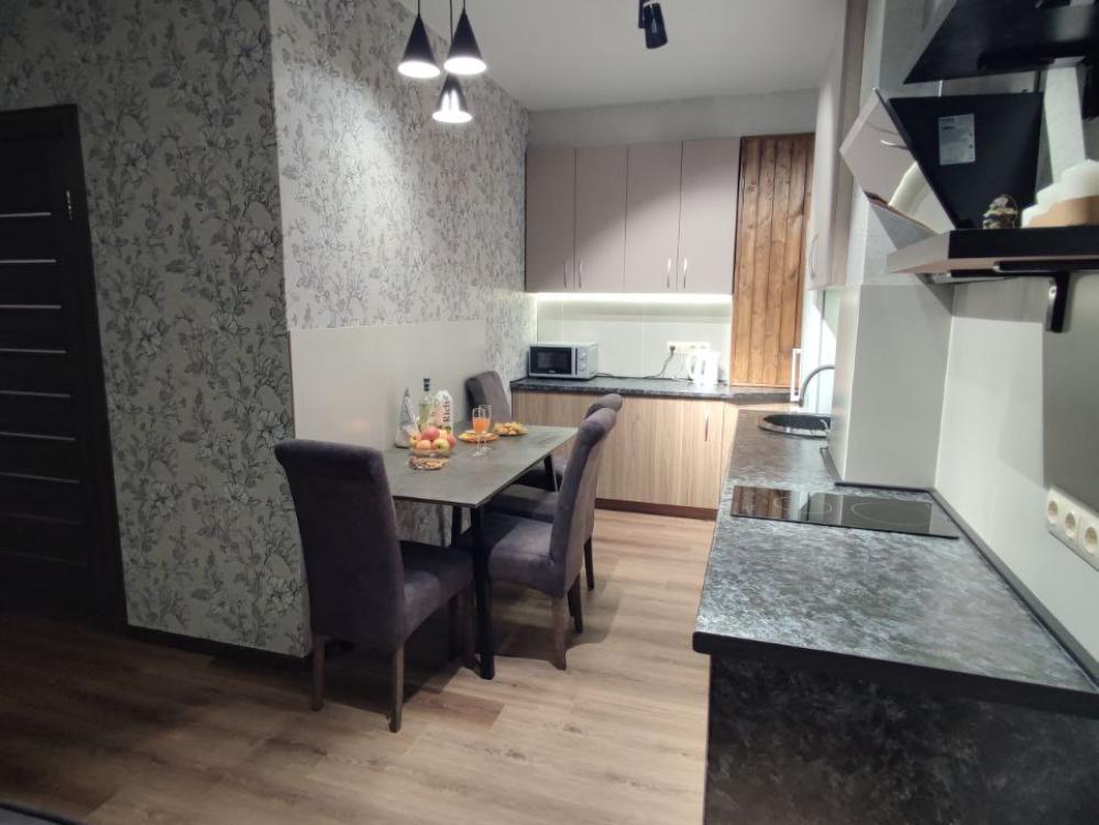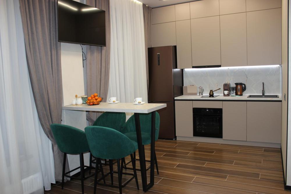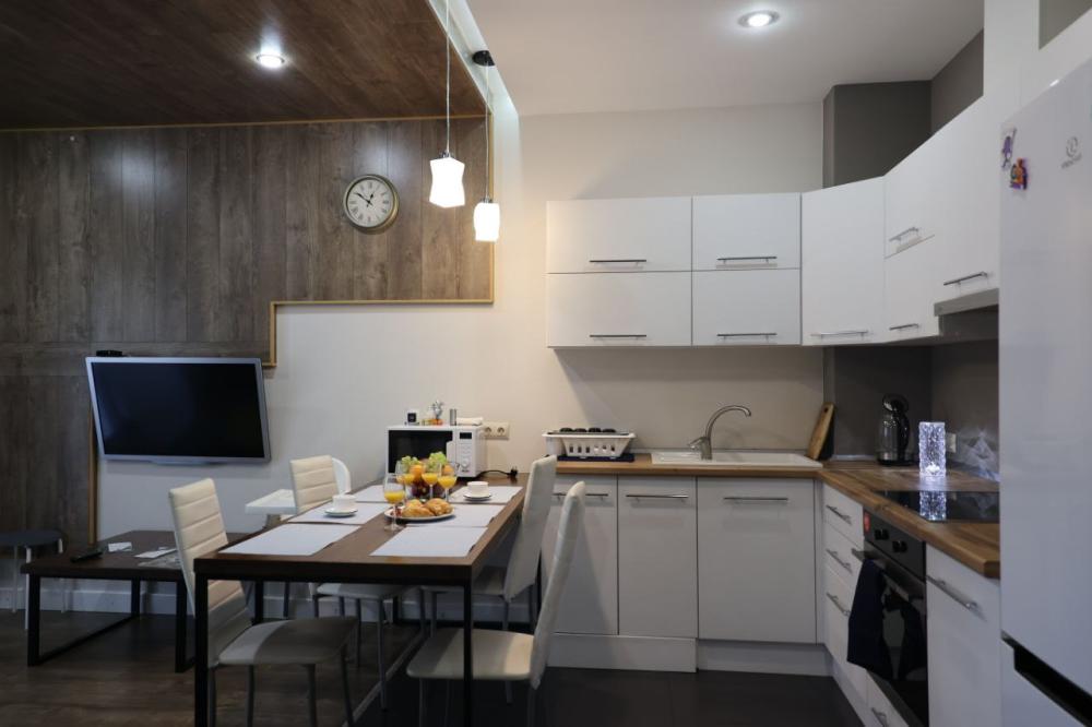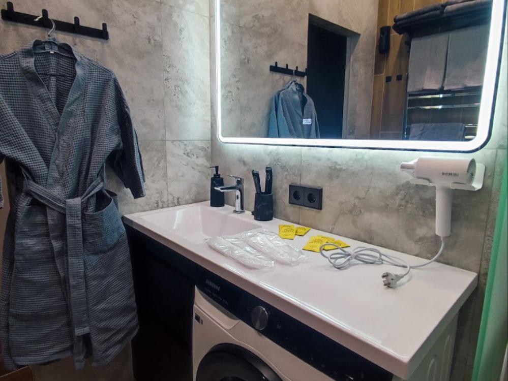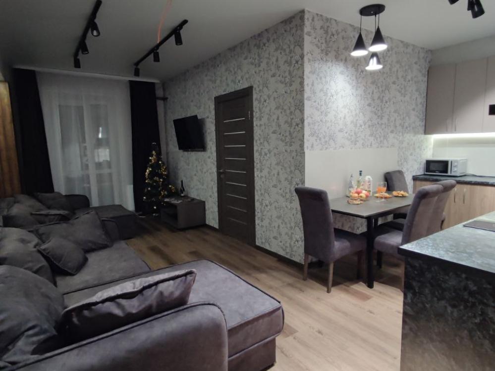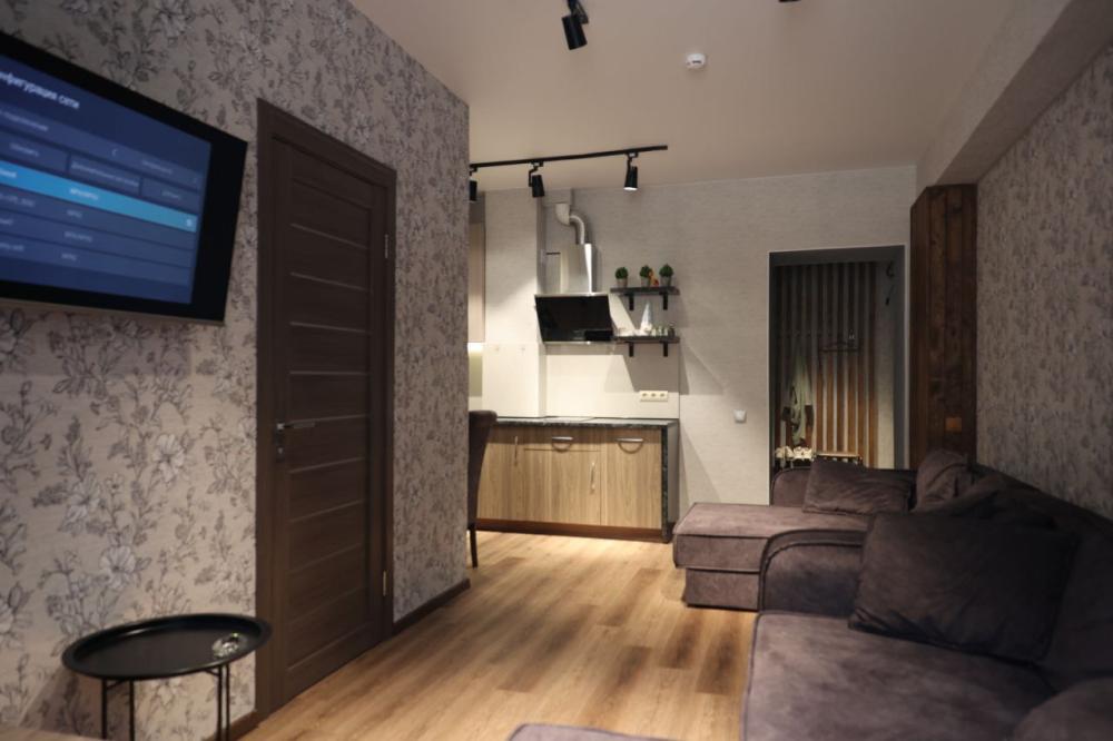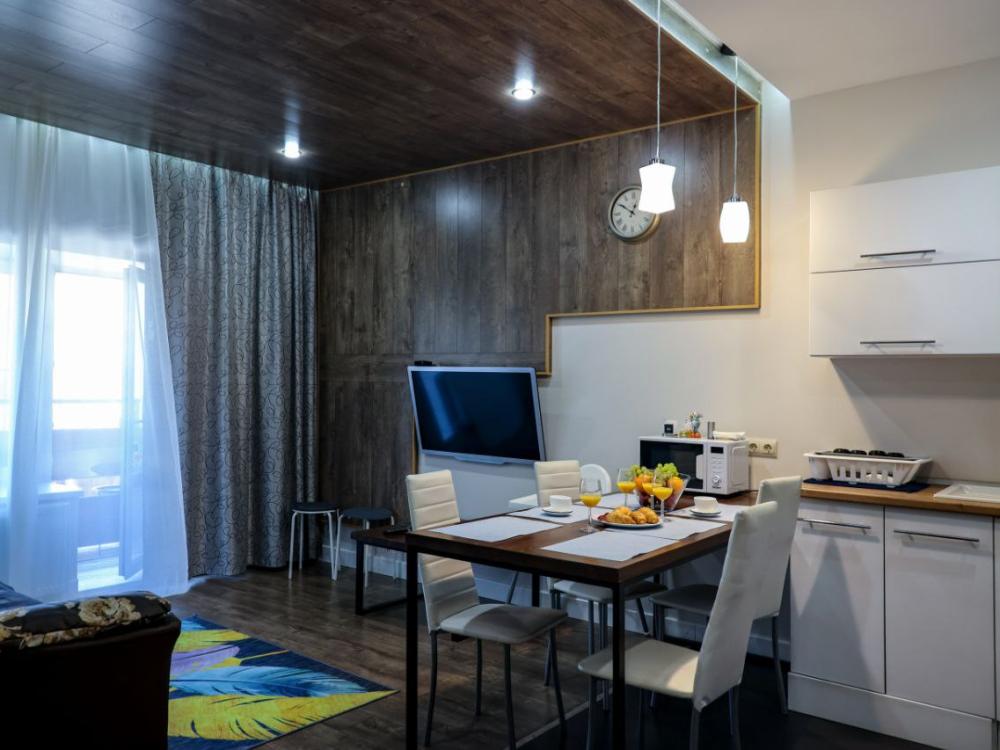 Видовые апартаменты, площадью 40 кв.м., с огромной лоджией и видом на лес. Полноценная кухня со встроенной ультрасовременной техникой: холодильник, индукционная плита, микроволновая печь, духовой шкаф, посудомоечная машина, собственная капсульная кофеварка, посуда. Ванная комната оборудована душевой кабиной, умным зеркалом, феном, стиральной машиной. В апартаментах также : регулируемые теплые полы, 2 smart TV, W-fi, наборы для душа, зубные наборы, халаты и тапочки. Вместимость до 4-х гостей