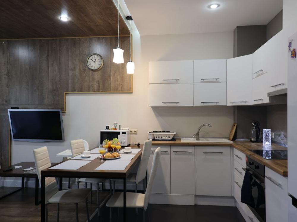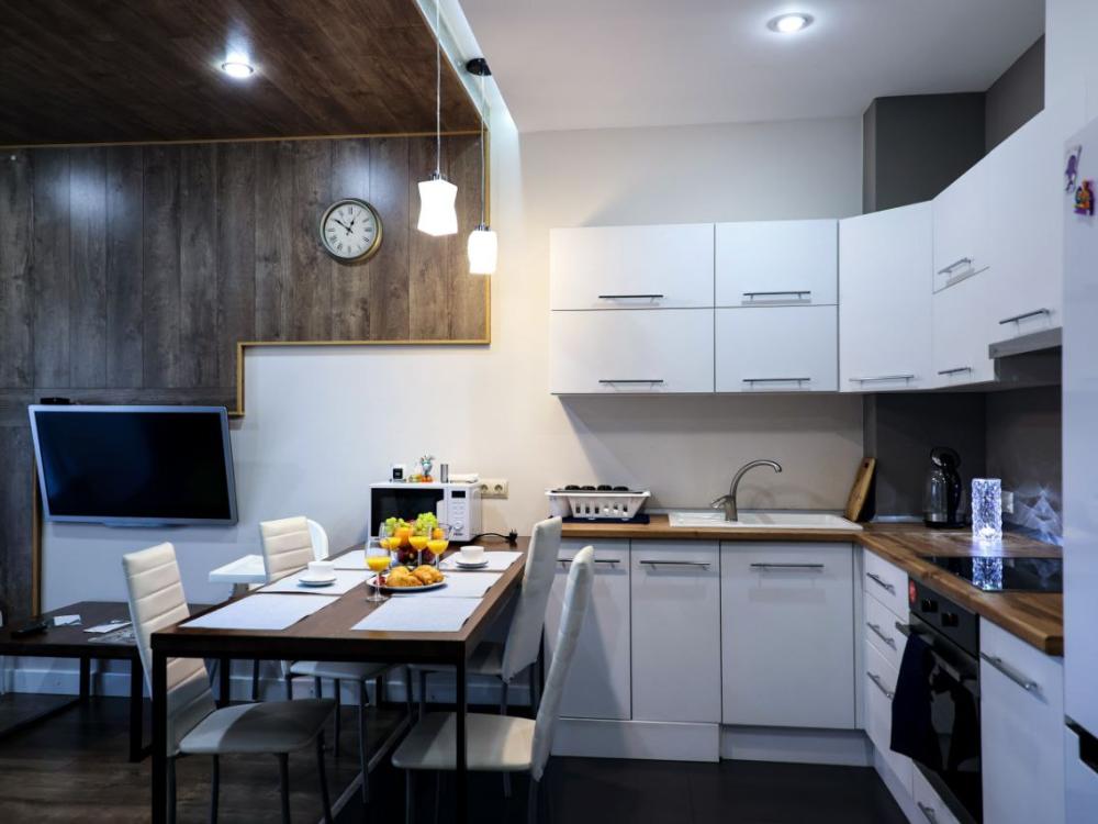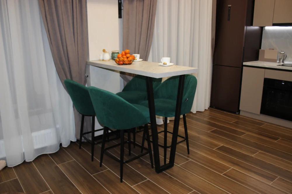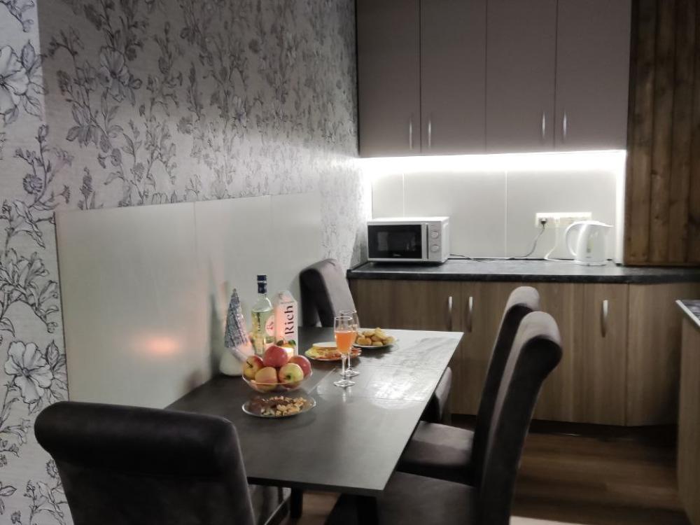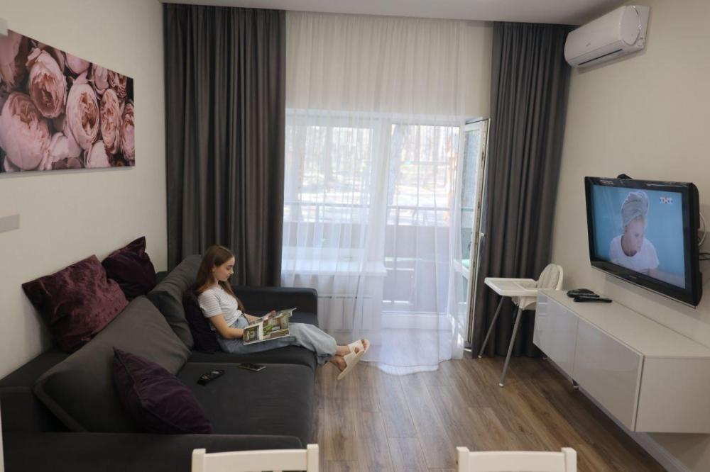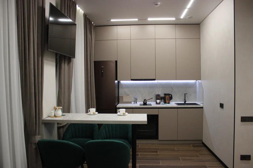 Видовые апартаменты, площадью 40 кв.м., с огромной лоджией и видом на лес. Полноценная кухня со встроенной ультрасовременной техникой: холодильник, индукционная плита, микроволновая печь, духовой шкаф, посудомоечная машина, собственная капсульная кофеварка, посуда. Ванная комната оборудована душевой кабиной, умным зеркалом, феном, стиральной машиной. В апартаментах также : регулируемые теплые полы, 2 smart TV, W-fi, наборы для душа, зубные наборы, халаты и тапочки. Вместимость до 4-х гостей