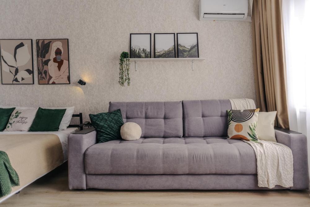 Квартира рассчитана на 5 гостей: двуспальная кровать и полноценный раздвижной диван в зале и раскладное кресло на кухне.