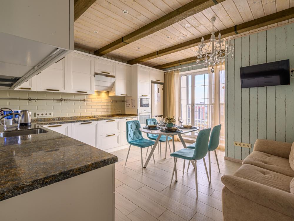 В квартире есть все необходимое для Вашего комфорта: • Автономное отопление • Кондиционер • Теплые полы на кухне и в ванной • 2 SMART TV • Двуспальная кровать • Двуспальный диван в комнате и двуспальный диван на кухне • Полностью оборудованная кухня (холодильник, электрическая варочная панель, духовой шкаф, вытяжка, посудомоечная машина, микроволновая печь, электрический чайник, фильтр для питьевой воды) • Посуда, столовые приборы, кастрюли и сковороды • Фен, ванные принадлежности • Утюг с гладильной доской • Стиральная машина • Сушилка • Бесплатный WI-FI • Мини-бар (за дополнительную стоимость)