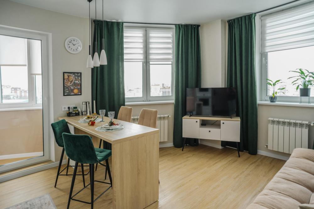 Светлая и стильная квартира, с панорамным видом на Волгу и город. Квартира создана для ценителей красивых закатов. Квартира подойдёт для 4 гостей. В спальне удобная двухместная кровать, шторы блэкаут и атмосферное рабочее место. Есть полноценный раздвижной диван в кухне-гостиной. Кухня-гостиная оснащена всей необходимой техникой: холодильник, микроволновая печь, духовой шкаф, электрическая индукционная плита с вытяжкой, чайник, телевизор. Есть вся кухонная утварь. Для гостей предусмотрены: гигиенические принадлежности, свежее отглаженное постельное белье, полотенца, халаты, полезные мелочи. Свежий евроремонт, тёплые полы, скоростной интернет, новая бытовая техника, удобное расположение розеток и продуманное локальное и общее освещение квартиры. Для автолюбителей закрытая парковка на придомовой территории. На лоджии удобное ротанговое кресло. У комплекса закрытая территория, просторная детская площадка, парковка. В холе консьерж 24ч. Система видеонаблюдения по всему комплексу и на этажах. Квартира не сдаётся для проведения вечеринок и шумных мероприятий. В квартире и лоджии запрещено курить. Договор подписывается только с гостями старше 21 года.