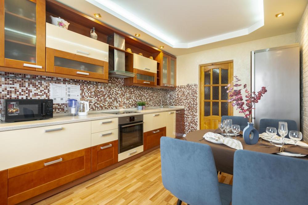 В квартире есть все необходимое для Вашего комфорта: • SMART TV в гостиной, ЖК в спальне • Электрический камин с функцией обогрева • Велотренажер и пр.тренажеры • Детская кроватка • Две двуспальные кровати в разных спальных комнатах • Двуспальный диван с топером в гостиной • Рабочее место • Полностью оборудованная кухня (холодильник, электрическая варочная панель, духовой шкаф, вытяжка, посудомоечная машина, микроволновая печь, электрический чайник, фильтр для питьевой воды) • Посуда, столовые приборы, кастрюли и сковороды • Фен, ванные принадлежности • Утюг с гладильной доской • Стиральная машина • Сушилка • Бесплатный WI-FI • Автономное отопление на дом • Мини-бар (за дополнительную стоимость)