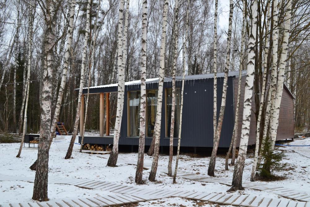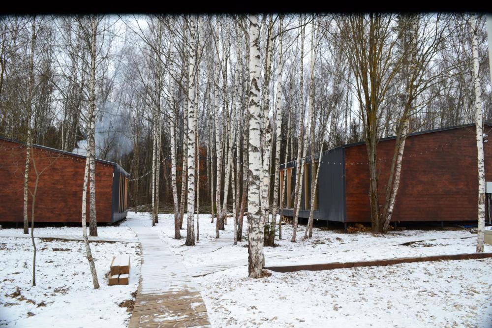 ⭐️Светлый барн 63 м² с панорамными окнами, террасой и мангальной зоной на свежем воздухе в березовом лесу. Один барн рассчитан максимально на 4х гостей.