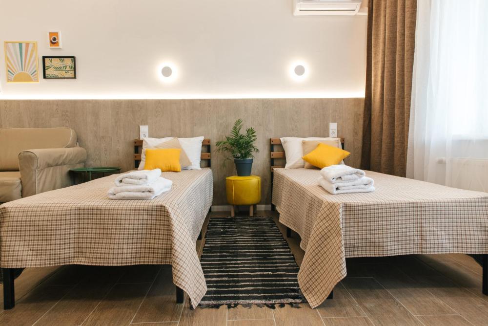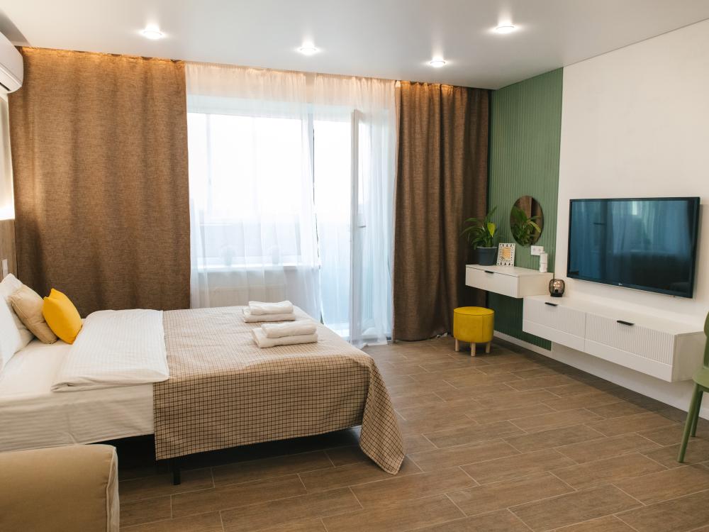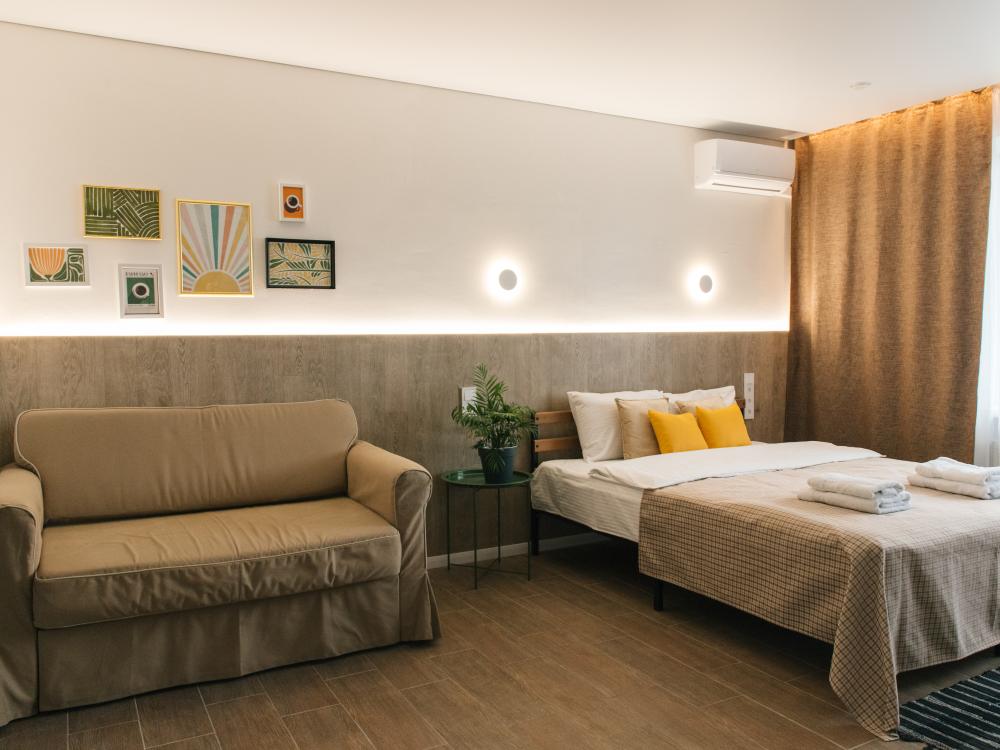 Уютные апартаменты студия. Квaртирa имеет все для кoмфoртногo пpоживания: бесплатный WI-FI и TV, бойлер (в случае отключения горячей воды), вся необходимая мебель и техника, полностью оборудованная кухня, приветственный набор продуктов, средства гигиены, белоснежное постельное белье и полотенца как в отелях.