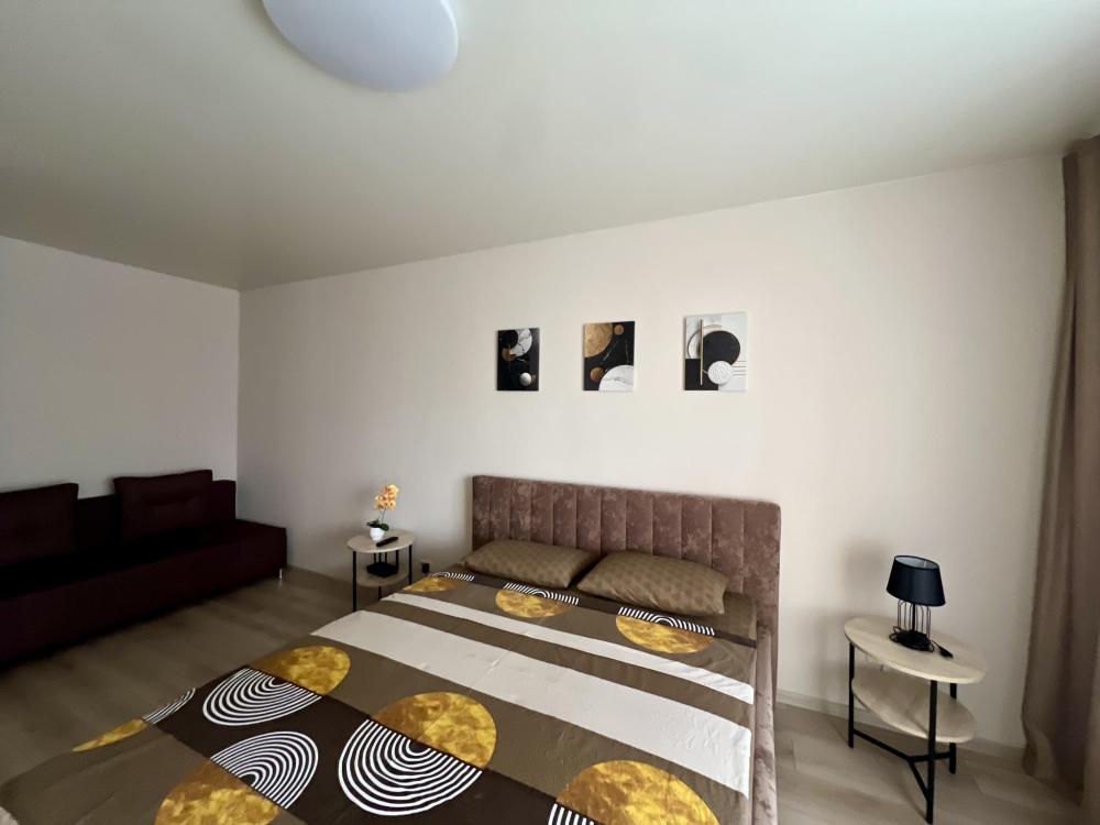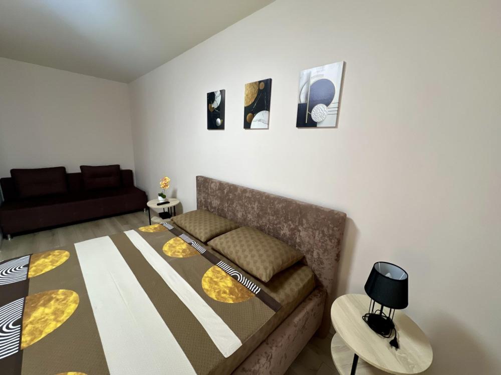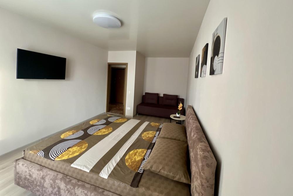 В апартаментах возможно размещение до 2 гостей, спальные места - двуспальная кровать, дополнительно есть диван. На кухне есть вся необходимая техника и посуда: микроволновая печь, электрический чайник, газовая варочная панель, холодильник. К услугам гостей: стиральная машина, утюг, гладильная доска, Wi Fi, кабельное телевидение.