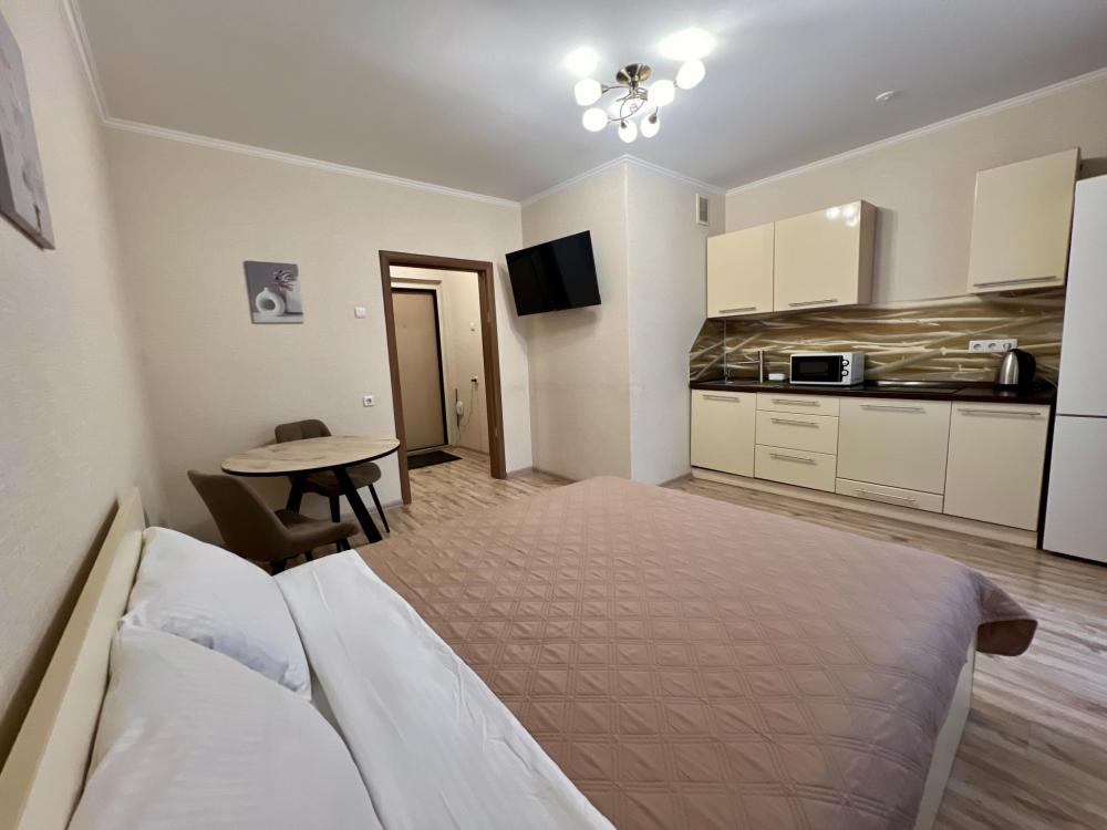 Квартира студия с евроремонтом находится в центре города Челябинска. Апартаменты имеют очень удобное расположение. В 5 минутах ходьбы расположены продуктовые магазины, аптеки, остановка общественного транспорта, пекарни, в 7.9 км ЖД-вокзал. До центра города 15 минут езды на автомобиле. Рядом находятся ТРК «Каширинский», Ботанический сад ЧелГУ, продуктовый рынок. В апартаментах возможно размещение до 2 гостей, спальные места - двуспальная кровать. На кухне есть вся необходимая техника и посуда: микроволновая печь, электрический чайник, варочная панель, холодильник. К услугам гостей: стиральная машина, утюг, гладильная доска, Wi Fi, кабельное телевидение.