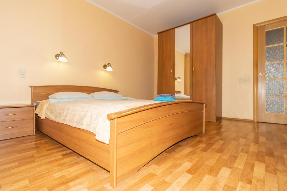 В квартире есть все необходимое для комфортного проживания до 7 человек. Две двуспальные кровати, полутороспальный диван, двуспальный диван, постельные принадлежности, кухонный гарнитур, обеденный стол, кухонная и столовая посуда, 2 телевизора (кабельное ТВ), интернет Wi-Fi, холодильник, микроволновая печь, кухонная плита, ванна, водонагреватель, стиральная машина-автомат, утюг, гладильная доска, сушилка для белья.