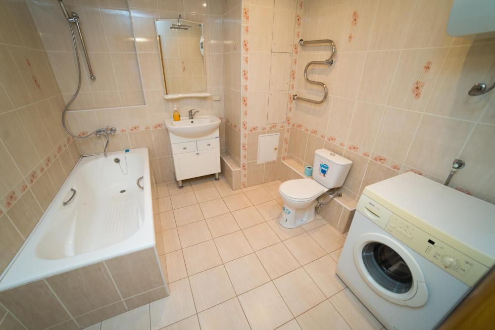 В квартире есть все необходимое для комфортного проживания до 6 человек. Две двуспальные кровати, двуспальный диван, постельные принадлежности, кухонный гарнитур, обеденный стол, кухонная и столовая посуда, 2 телевизора (кабельное ТВ), интернет Wi-Fi, холодильник, микроволновая печь, кухонная плита, ванна, водонагреватель, стиральная машина-автомат, утюг, гладильная доска, сушилка для белья.