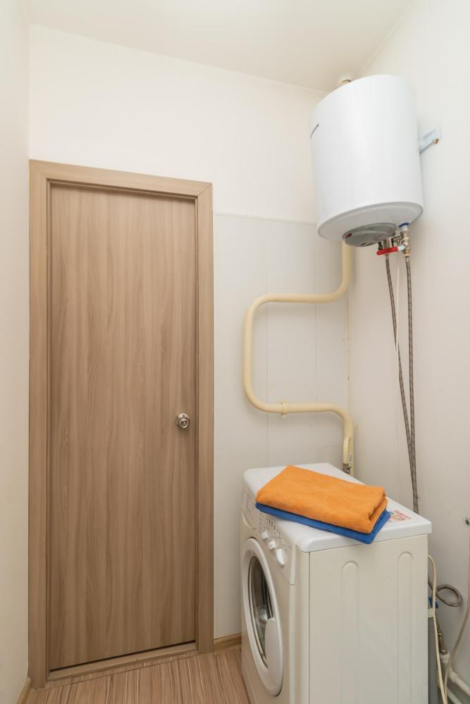 В квартире возможно размещение 4 гостей. Спальные места: двуспальная кровать, двуспальный диван. В квартире также есть кондиционер, водонагреватель, кухня, обеденный стол, кухонная и столовая посуда, телевизор (кабельное ТВ), Wi-Fi, холодильник, микроволновая печь, кухонная плита, ванна, стиральная машина-автомат, утюг, гладильная доска, сушилка для белья.