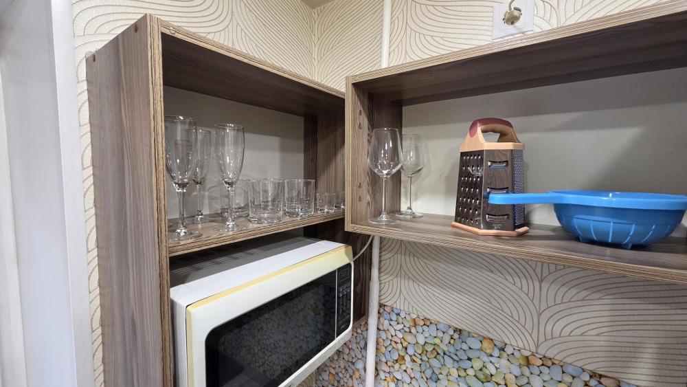 Чистая и очень уютная однокомнатная квартира для кратковременного проживания 2 человек, семьи или командировочным. В квартире есть очень большая комфортная двухместная кровать и диван который с легкостью раскладывается. На кухне имеется кухонный гарнитур, холодильник, св - печь, бытовая техника и разная посуда для приготовлении пищи. Всегда чистое, глаженное бельё и полотенца. В ванной комнате, есть теплый пол, а также кристально белая ванная. А также есть телевизор, фен, утюг, гладильная доска, машинка стиральная автомат, сушилка для белья, средства личной гигиены, кабельное ТВ и Wi-Fi. Есть все необходимое для комфортного проживания.