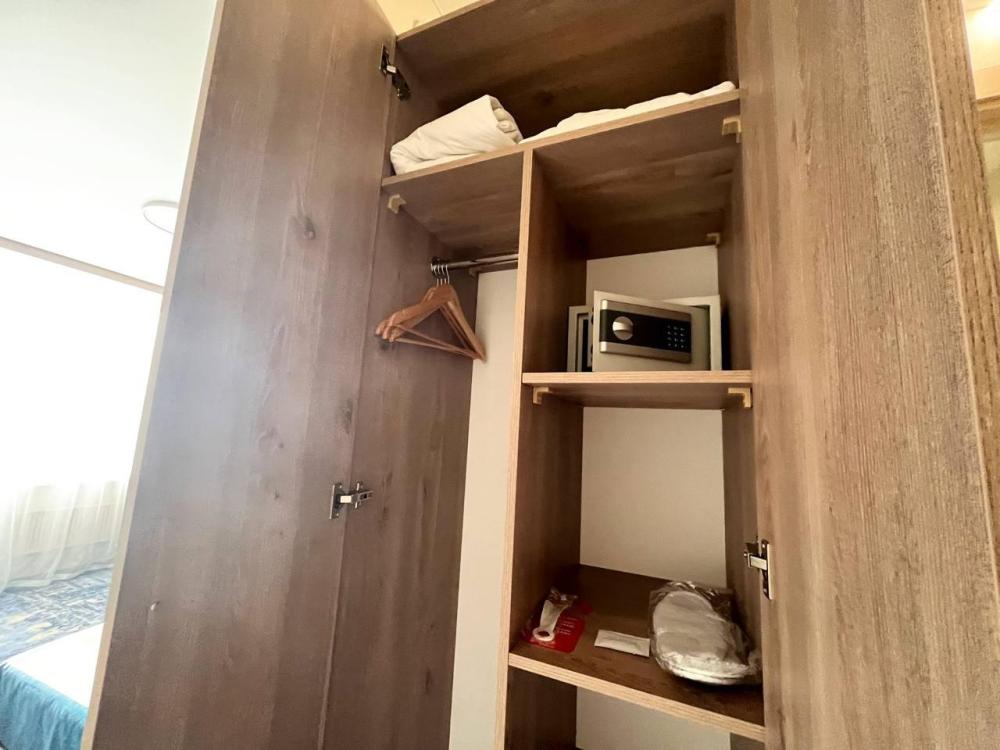 В номере: две раздельные кровати, прикроватные тумбы, телевизор (спутниковое TV), телефон, шкаф, письменный стол, стул, торшер, багажная тумба. Санузел: 3.0 м²: Душевая кабина, зеркало, фен, полотенца, гигиенический набор (мыло, шампунь, гель для душа)