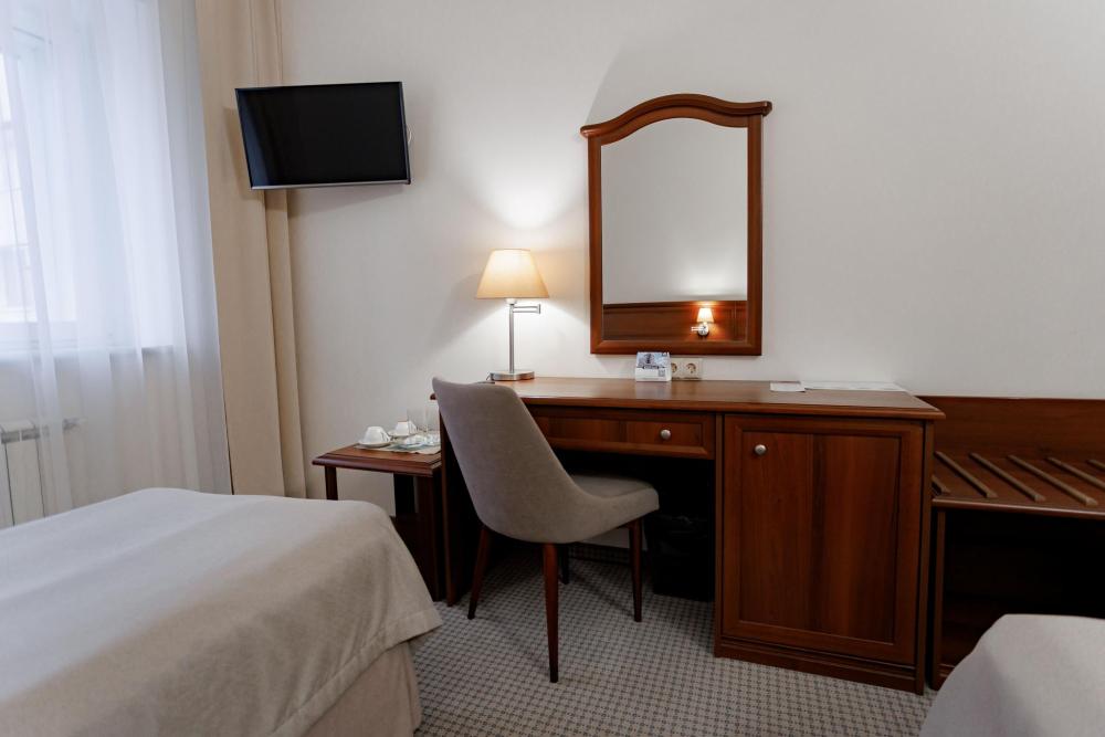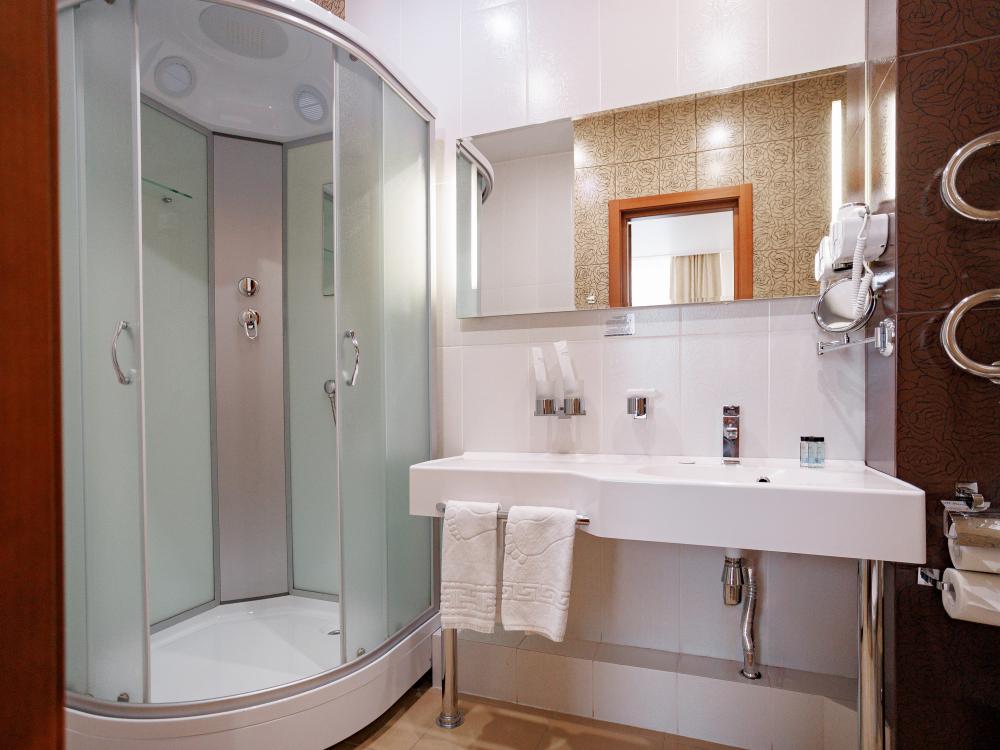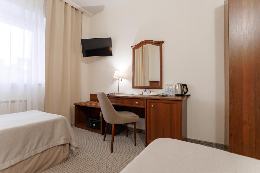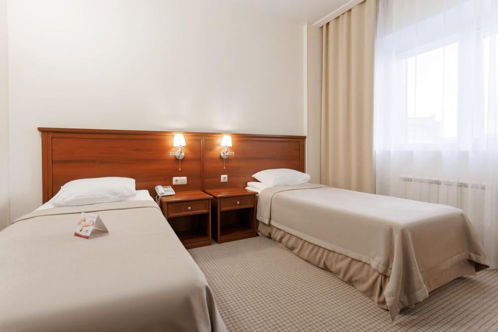 Просторный двухместный номер площадью 24 кв. м позволит вам почувствовать себя, как дома. Стильный интерьер с преобладанием бежевого и кремового оттенков заряжает положительной энергией, поддерживая атмосферу безмятежного отдыха. Оптимальный вариант проживания одного или двоих гостей. Номер оснащен двумя раздельными кроватями 90*200 см.,ванной комнатой, шкафом для одежды, рабочим местом,чайными принадлежностями, косметическим набором, ЖК телевизором, душевой кабиной, мини баром, кондиционером. В стоимость номера входит завтрак (шведский стол), парковка, бесплатное пользование Wi-Fi, пользование тренажерным залом, сауной, предоставление услуг городской, междугородней и международной телефонной связи.
