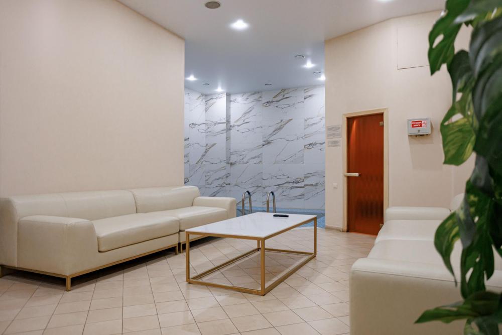 Просторный номер с панорамным остеклением. Из окон панорамной студии открывается захватывающий вид на город. Номер располагает широкой двуспальной кроватью 180*200 см, раздвижным диваном, благодаря которому в номере могут разместиться до 4 гостей, рабочей зоной с просторным столом, удобным для работы и хранения документов, мягкой мебелью из кожи, которая подарит Вам ощущение роскоши и комфорта. Ванная комната располагает паровой душевой кабиной.