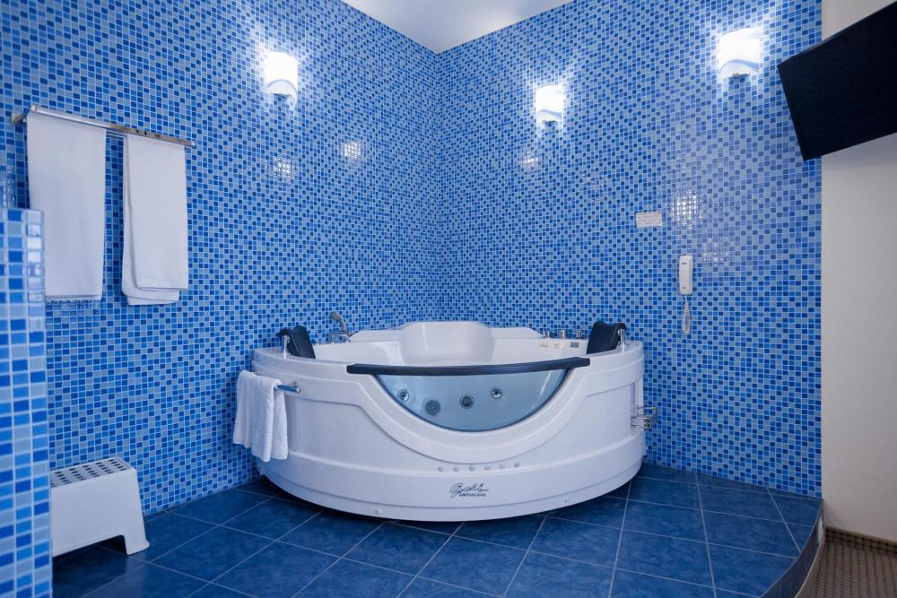 Прекрасный романтический номер авторского дизайна с джакузи прямо в комнате и отдельной ванной комнатой с душевой кабиной. В номере широкая двуспальная кровать 180*200 см. Идеальный номер для влюбленных пар и молодоженов. Площадь номера 30 кв.м.