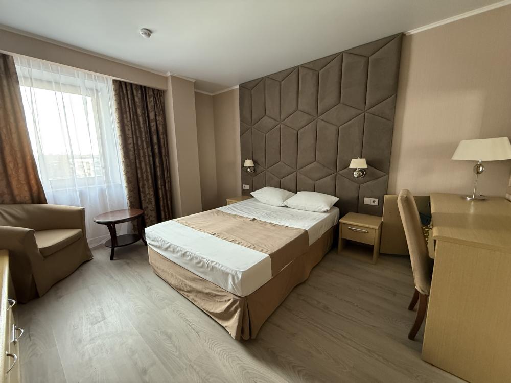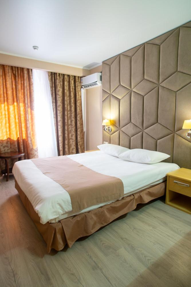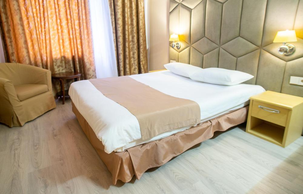 Номер категории «Сomfort-Superior»- номер с увеличенной площадью,в номере одна большая кровать. В нём есть все необходимое для полноценного комфортного отдыха. К вашим услугам: -кондиционер -Wi-Fi -ванная комната (душ, туалет,фен); -круглосуточная подача горячей и холодной воды; -отопление в холодное время года; - ЖК телевизор (более 300 каналов); -холодильник. чайник; -постельное белье из натуральных тканей; -стол, стул; -гостевой набор мини парфюмерии;