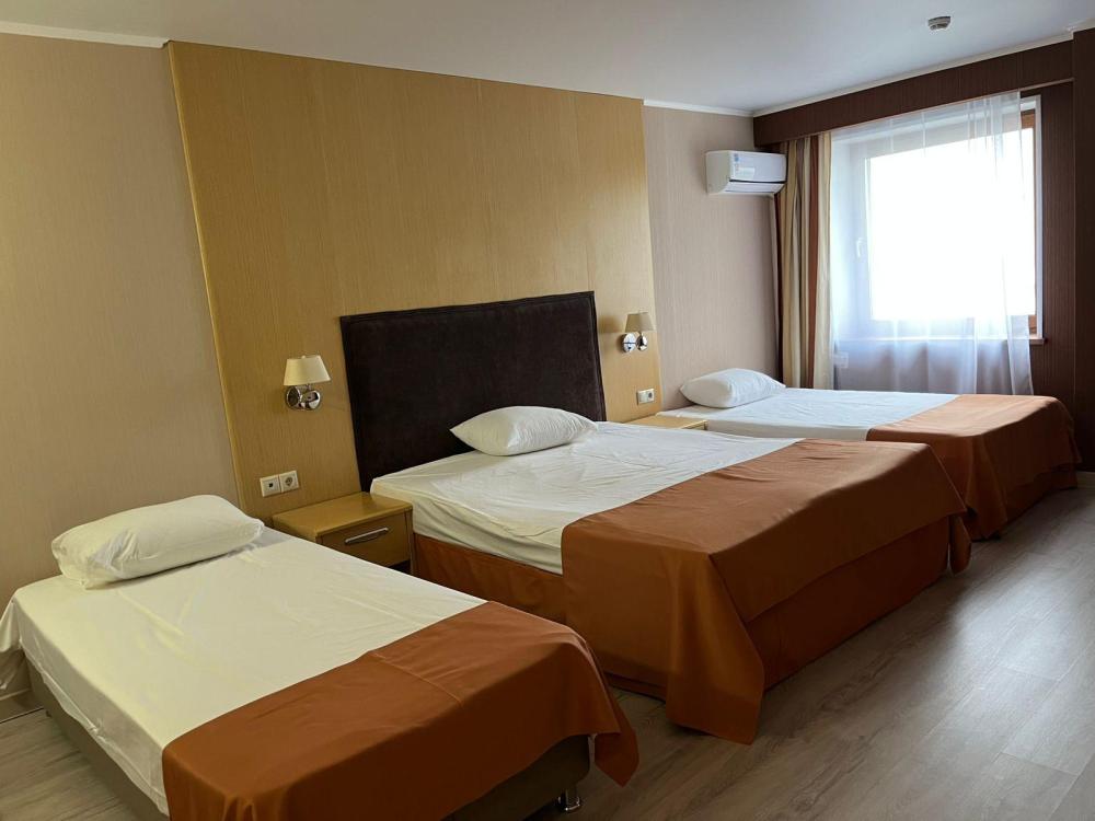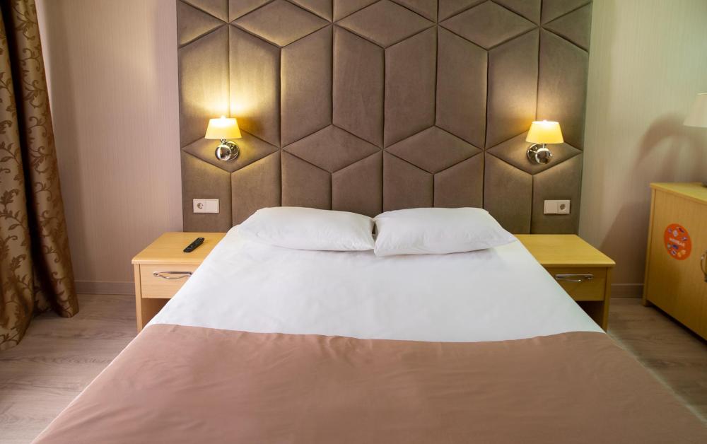 Номер категории «Сomfort-TWIN» номер с двумя двуспальными кроватями. В нём есть все необходимое для полноценного комфортного отдыха. К вашим услугам: -кондиционер -Wi-Fi -ванная комната (ванна/душ, туалет); -круглосуточная подача горячей и холодной воды; -отопление в холодное время года; - ЖК телевизор (более 300 каналов); -холодильник. чайник; -постельное белье из натуральных тканей; -письменный стол, два стула; -гостевой набор мини парфюмерии;