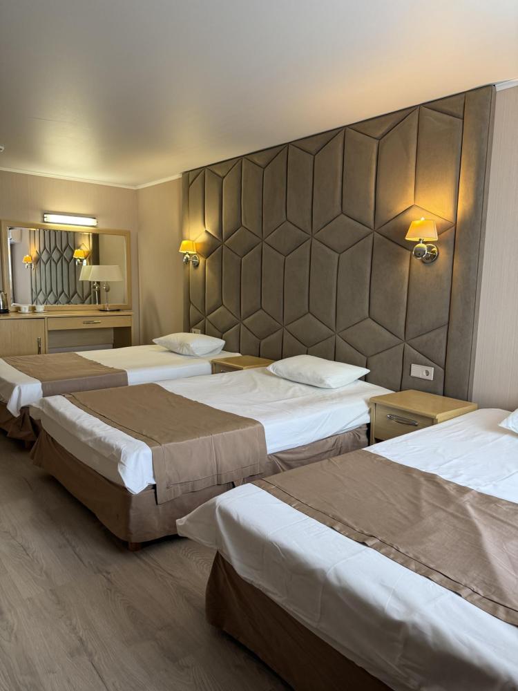 Номер категории "Family room" - номер с тремя кроватями, площадью 33 м2. Номер идеально подходит для семьи (папа-мама-ребенок) или делового визита с сопровождением. Каждый номер этой категории оснащен всем необходимым для Вашего комфортного отдыха. К вашим услугам: -кондиционер -Wi-Fi -ванная комната (ванна/душ, туалет); -круглосуточная подача горячей и холодной воды; -отопление в холодное время года; - ЖК телевизор (более 300 каналов); -холодильник. чайник; -постельное белье из натуральных тканей; -письменный стол, три стула; -гостевой набор мини парфюмерии;