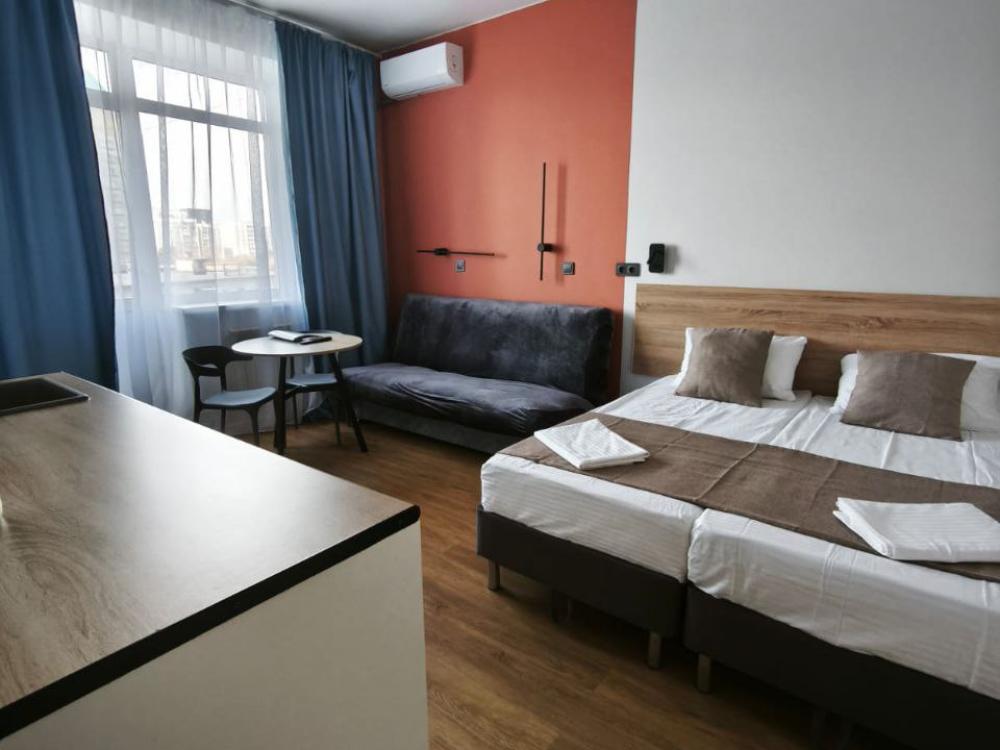 Однокомнатные апартаменты сети «Поделам» в Челябинске. Квартира размещается в ультра-современном жилом комплексе, рядом с ним ТРК Родник. Апартаменты оснащены: двухспальная кровать, диван раскладной, кухня со всем необходимым, балкон, стиральная машина, фен, утюг,...