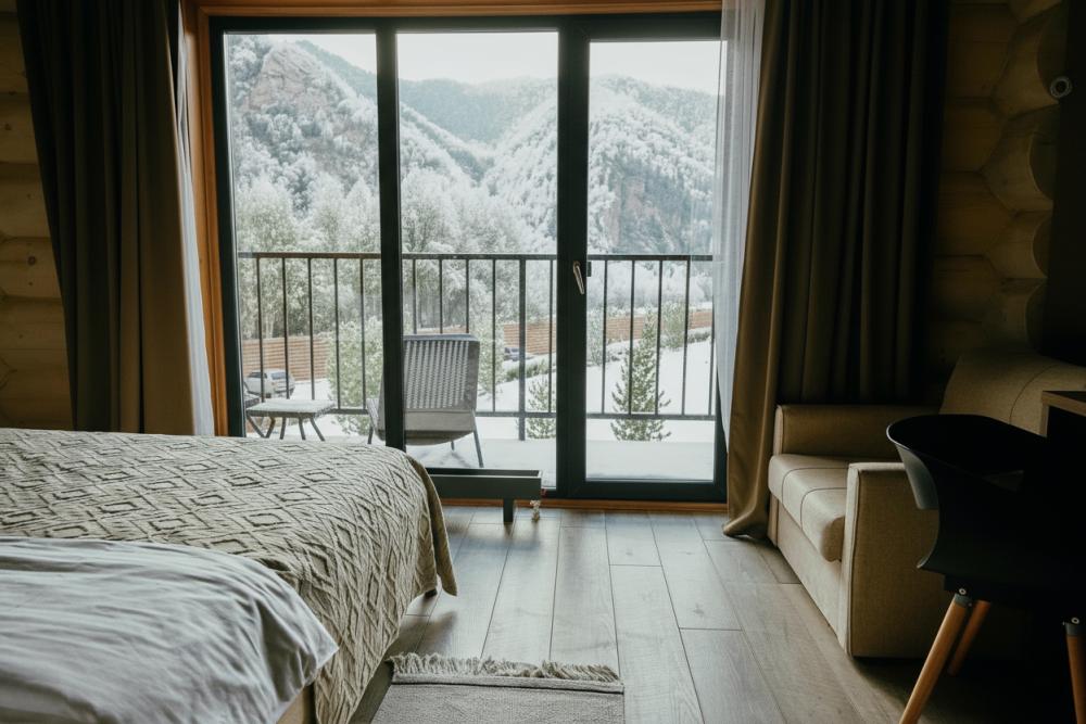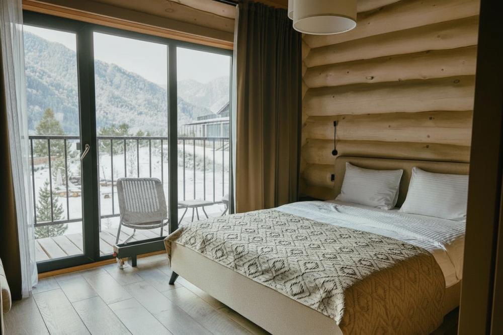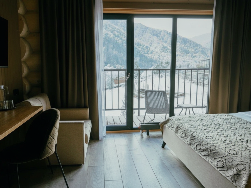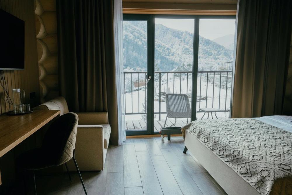 Двухместный номер с балконом, с видом на Катунь и горы. Идеальный вариант для проживания 2х гостей. В номере есть возможность размещение ребенка с 3 до 14 лет на удобном дополнительном месте. Удобства в номере: - двуспальная кровать с мягким изголовьем (160 x 200) - ортопедический матрас - белоснежное постельное бельё - туалет и душ с термостатом - косметические средства для душа - халаты, махровые полотенца, тапочки, фен - теплый пол - капсульная кофемашина и чайник - кресла и столик на балконе - питьевая вода из артезианской скважины - высокоскоростной интернет, бесплатный Wi-Fi - комплектация мини бара по предварительному запросу