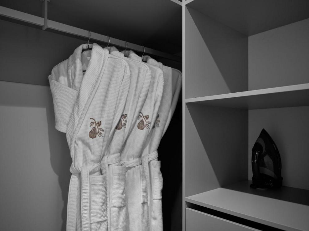 Двухэтажный дом в отдалении с видом на сад и горы. Дома образуют большую благоустроенную территорию. Внутри круглой застройки образуется своя уединенная атмосфера. – Уютная кухня-гостиная и две спальни – Терраса с навесом – Мангальная зона – Панорамный вид – 2 балкона – Гараж