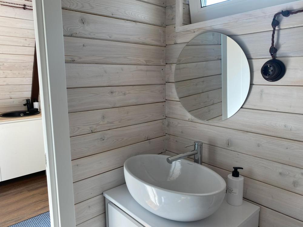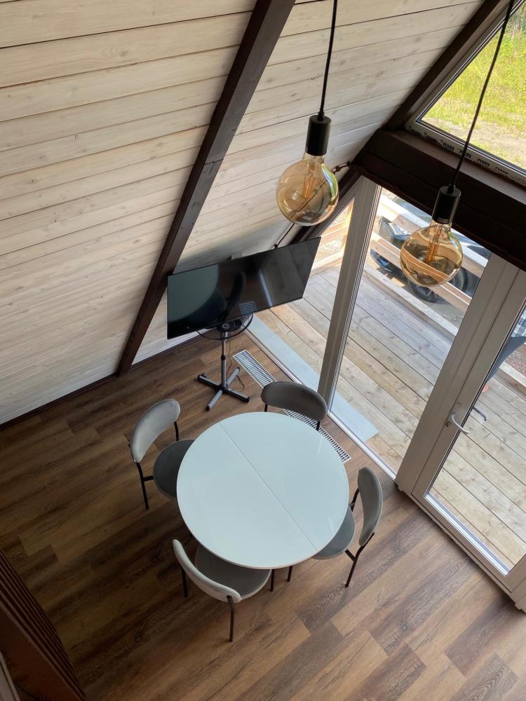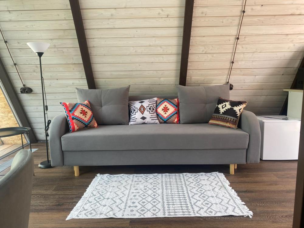Всего на территории 4 домика. Каждый домик рассчитан на 4 человека. В домике имеется все необходимое для комфортного проживания : двуспальная кровать, диван, душ, кухня с микроволновой печью, телевизор, Wi-Fi.