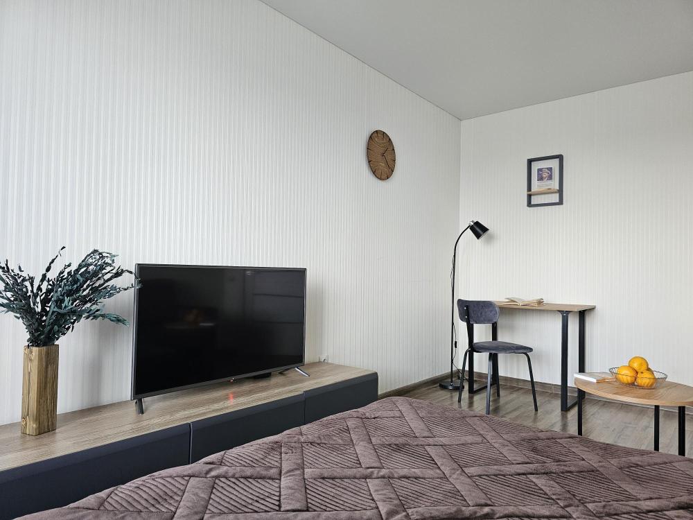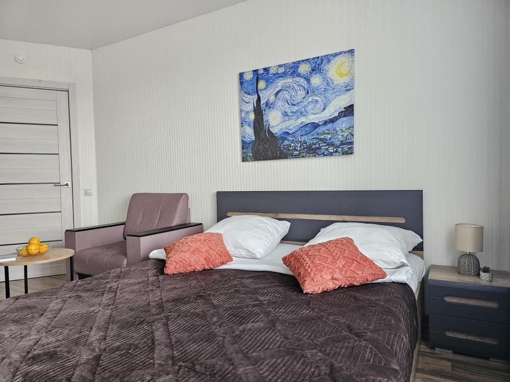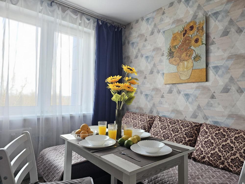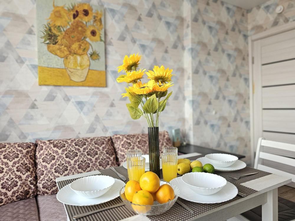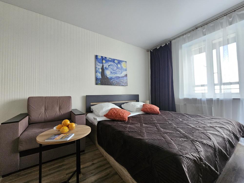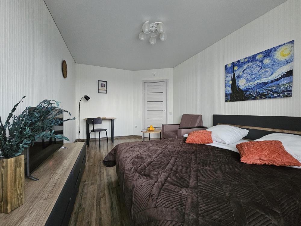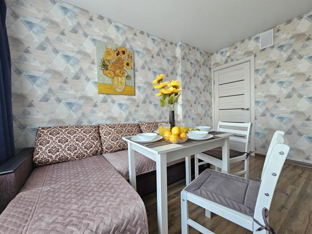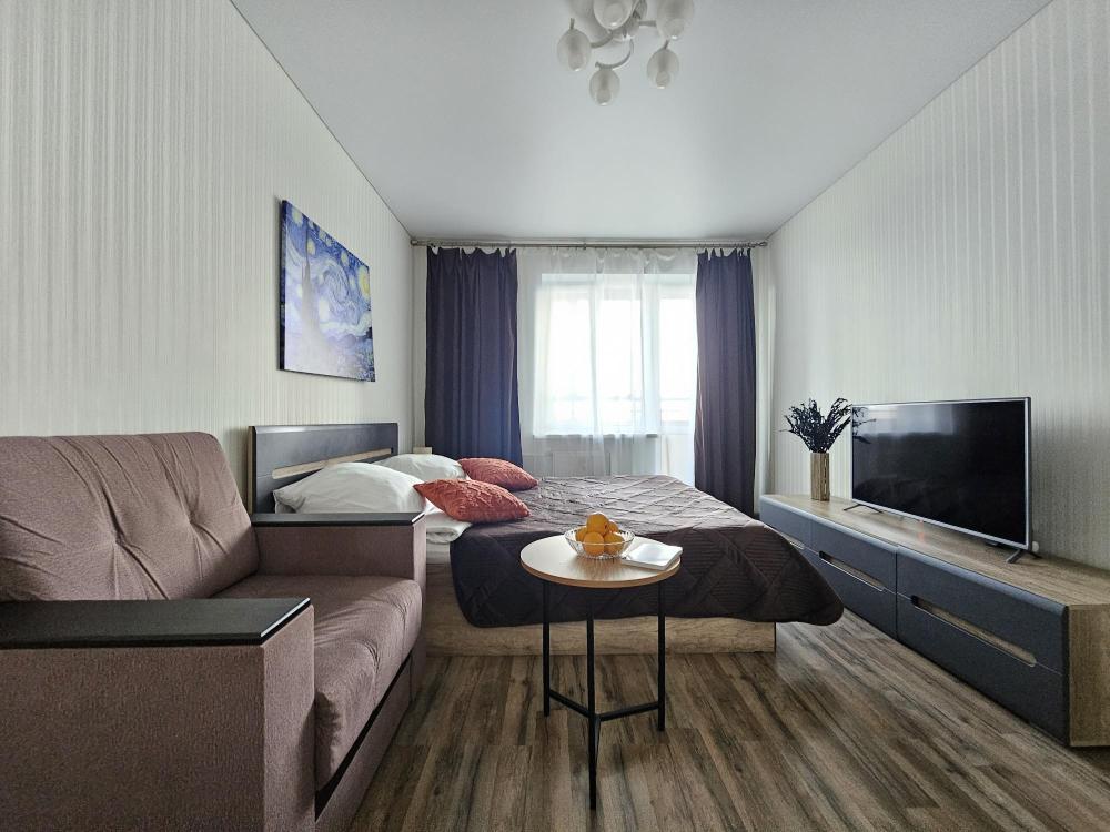 Уютная однокомнатная квартира в центре города в Жилом Комплексе "Парк Горького" с видом на Соляной парк. Возможно размещение до 4 гостей. Квартира укомплектована всем необходимым для проживания: 2 раздельных спальных места - двуспальная кровать, двуспальный диван, белое постельное белье, комплект полотенец из 2х штук - для душа и для рук. Кухня с полным комплектом посуды, холодильником, электро-чайником, стиральной машиной, микроволновкой, имеется утюг, фен, телевизор, Wi-Fi. Имеется рабочее место. Средства гигиены: шампунь и гель для душа.