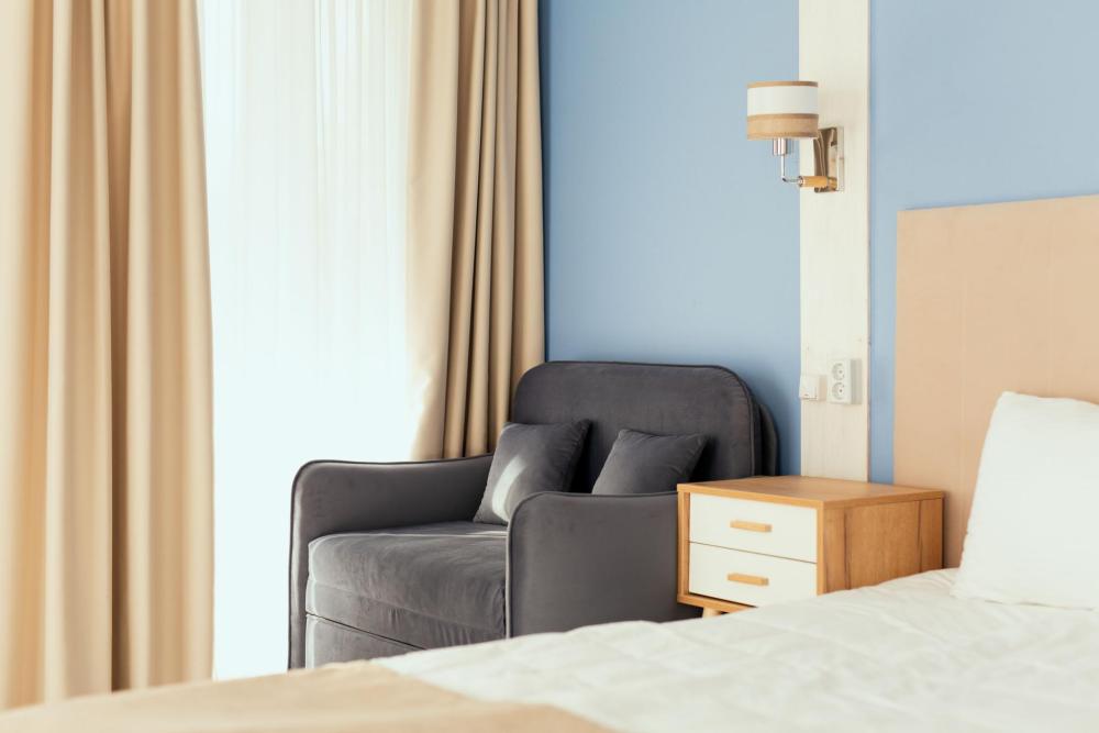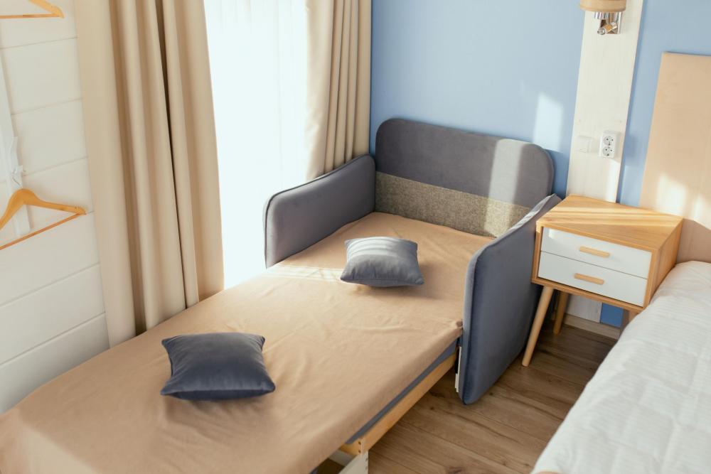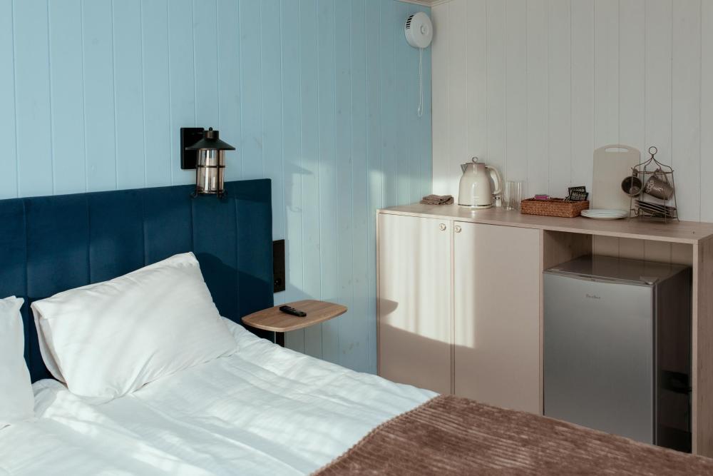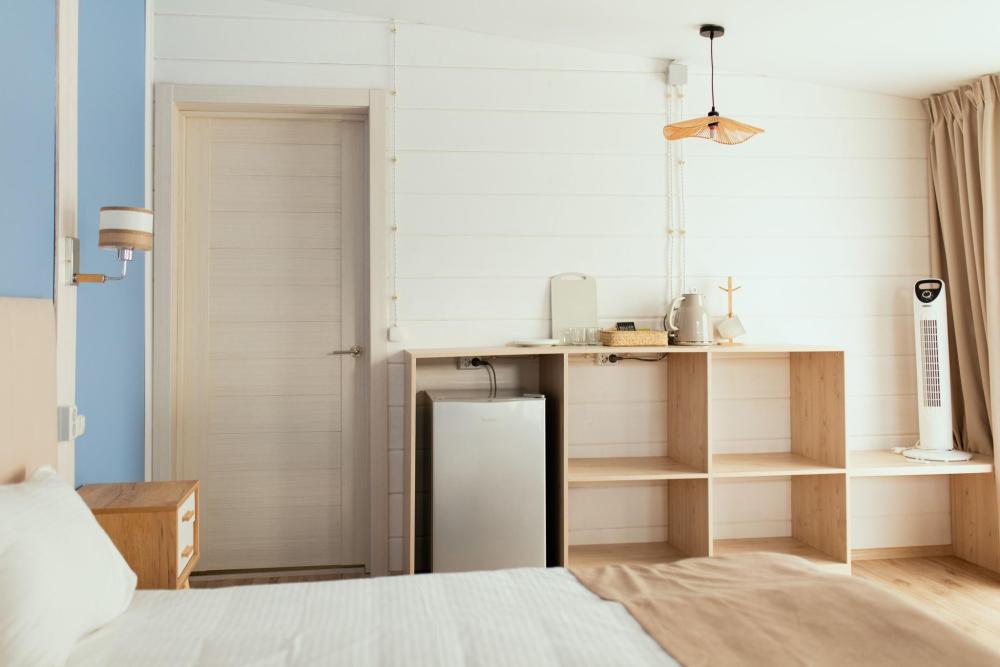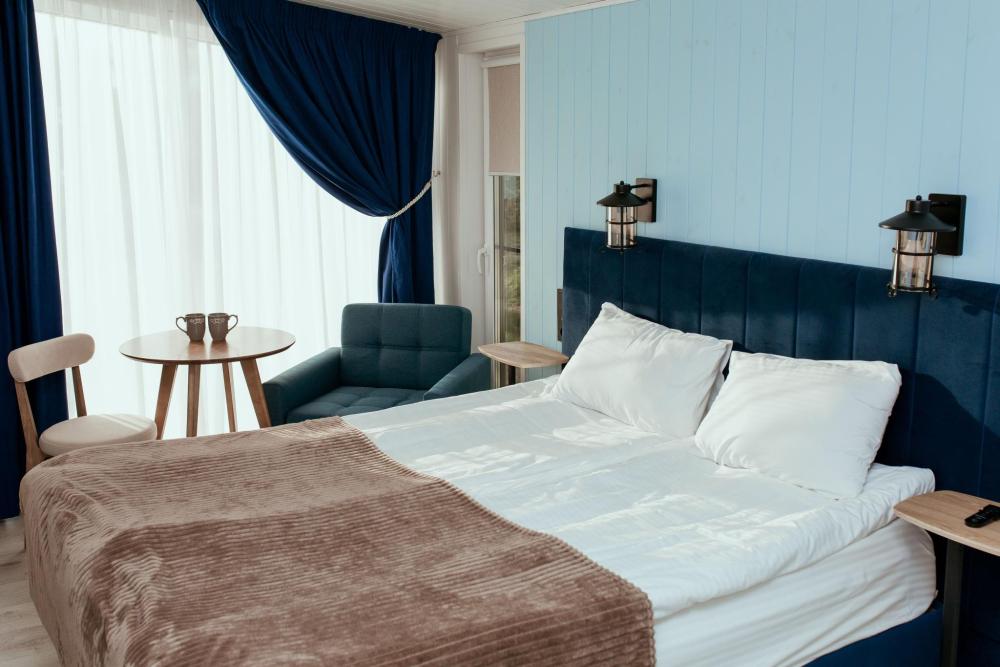Дизайн номера выполнен в морском стиле, который позволит вам ощутить свежий ветер, услышать, как раскрываются паруса, и увидеть тонкую полоску горизонта на бескрайнем морском просторе. На время своего отпуска представьте себя капитаном яхты и отправляйтесь навстречу приключениям со своей командой. Собственная терраса с уличной мебелью и мангалом станет идеальным местом для утреннего кофе или уютных вечеров на свежем воздухе. Номер отлично подойдет для романтического отдыха, семейных поездок и путешествий с друзьями. Здесь вас ждет атмосфера уюта и свободы, позволяющая по-настоящему расслабиться и насладиться природой.
