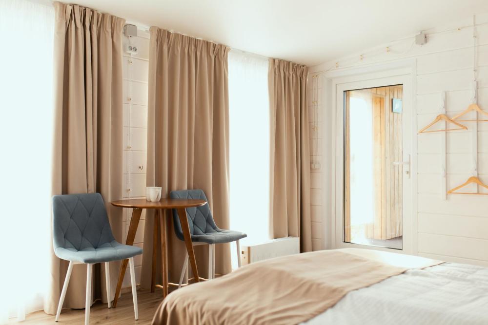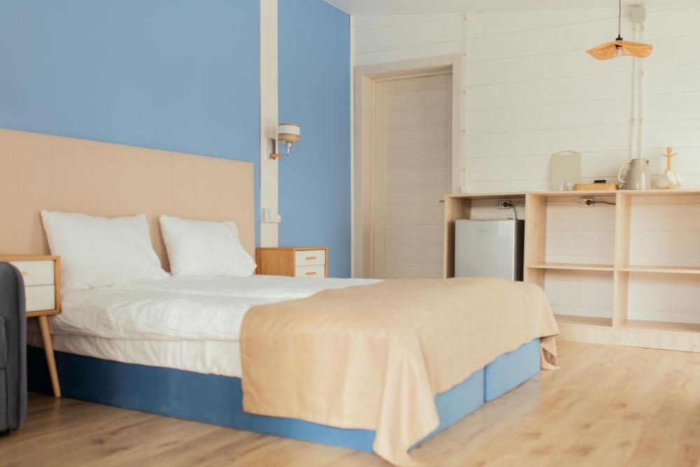 Уютный круглогодичный лодж с потрясающим видом из панорамного окна и экологическим интерьером в прибрежном стиле. Площадь 50 м2, включая крытую террасу с креслами. Внутри для Вас: - Двуспальная кровать 160х200 с ортопедическими матрасами, двухместных раскладной дизайн 140х200, - собственный санузел внутри (туалет, умывальник, душ), - полноценная кухня (плита, СВЧ, посудомоечная машина, чайник, холодильник, посуда для приготовления и сервировки), - обеденная зона, - журнальный столик, - стеллаж для одежды, - зеркало и мини-сейф, - для комфортного климата: электрические конвекторы, электрофумигаторы. Предоставляются - постельное белье и полотенца, косметические принадлежности, тапочки, в номере есть фен. В стоимость включена аренда лоджа, парковочное место и возможность пользовать инфраструктурой глэмпинга, мангальной зоной. Дополнительная услуга – банный комплекс с выходом на реку: баня с панорамным окном из парилки и подогреваемая купель фурако с подсветкой.