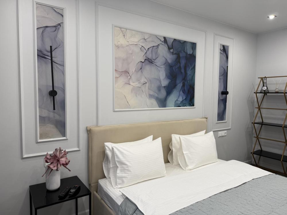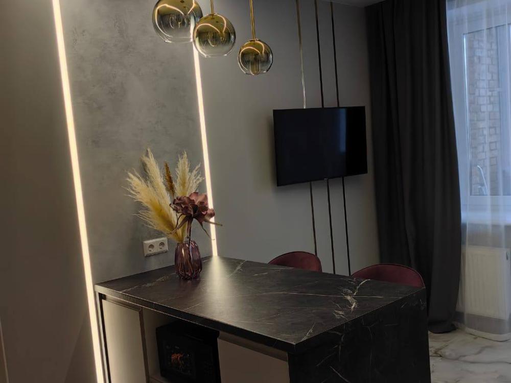 Оборудована: Кухонный гарнитур; Посуда для готовки, столовые приборы; Холодильник, вытяжка; Стиральная машина; СВЧ-печь, плита, чайник; Фен, утюг c гладильной доской; Полотенца, постельное белье; Средства гигиены; Удобная ванна; Wi-Fi роутер; Телевизор с TV-приставкой;