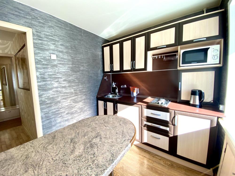 Выполнен косметический ремонт, в интерьере преобладают теплые тона и натуральные текстуры. Качественный ремонт, светлые стены, естественный свет придают пространству особую теплоту. Квартира расположена на солнечной стороне, и ее окна пропускает приятный солнечный свет, что добавляет еще больше уюта. Расположение: Площадь Декабристов - 2 км; Площадь Ленина - 2 км; ЖД Вокзал - 2,5 км. Оборудована: Кухонный гарнитур; Посуда для готовки, столовые приборы; Холодильник, вытяжка; Стиральная машина; СВЧ-печь, плита, чайник; Фен, утюг c гладильной доской; Полотенца, постельное белье; Средства гигиены; Удобная ванна; Wi-Fi роутер; Телевизор с TV-приставкой; Вместительный распашной шкаф; Двуспальный диван, односпальная кровать.