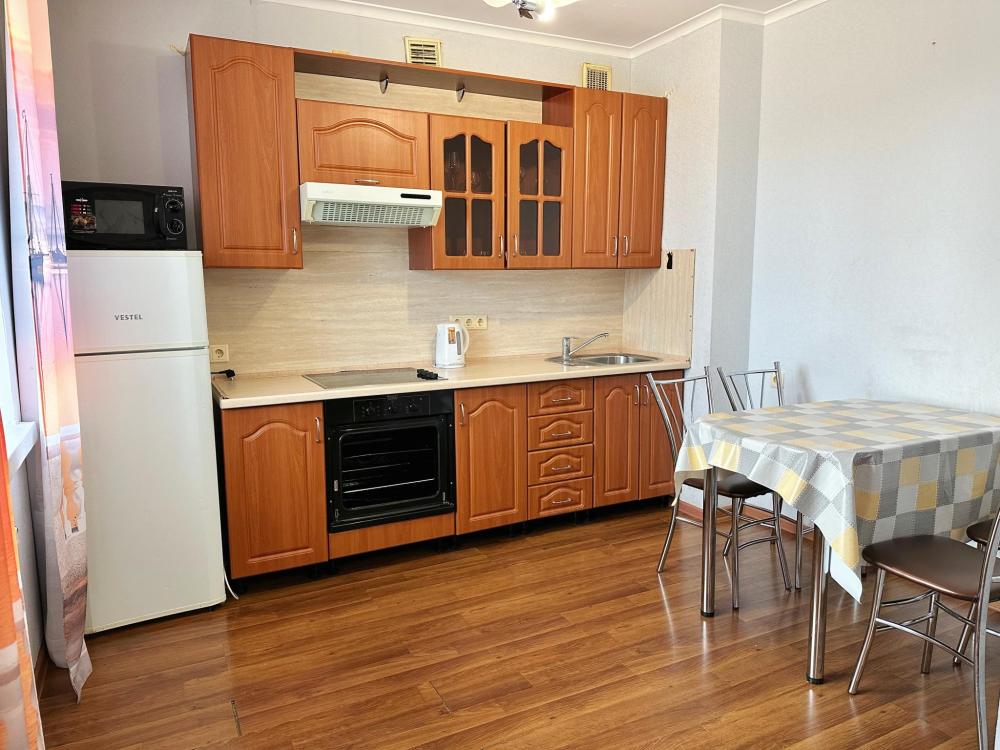 Выполнен косметический ремонт, в интерьере преобладают спокойные, приятные тона. Квартира расположена на солнечной стороне, и ее окна пропускает приятный солнечный свет, что добавляет еще больше уюта. Оборудована: •Кухонный гарнитур; •Посуда для готовки, столовые приборы; •Холодильник, вытяжка; •Стиральная машина; •СВЧ-печь, плита, чайник; •Фен, утюг c гладильной доской; •Полотенца, постельное белье; •Средства гигиены; •Удобная ванна; •Wi-Fi роутер; •Телевизор с TV-приставкой; •Вместительный распашной шкаф; •Рабочее место; •Двуспальная кровать, двуспальный диван.