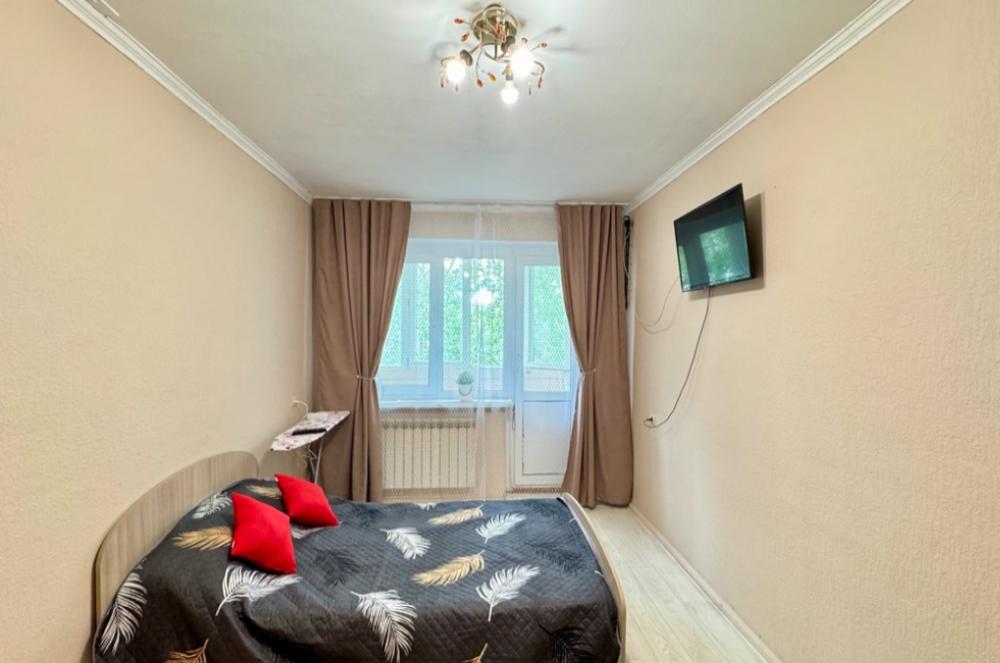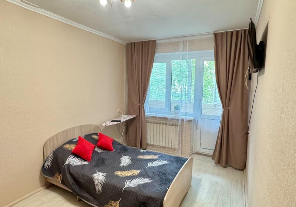 Уютные апартаменты, оборудованные всем необходимым. Спальные места: двуспальная кровать, диван. Квартира оснащена бытовой техникой, необходимой для проживания: электрическая плита, чайник, плазменный телевизор, стиральная машинка автомат, холодильник. Для хранения вещей шкаф. Балкон с видом на улицу. Постельное белье полиэстер, подушки, одеяла, полотенца.