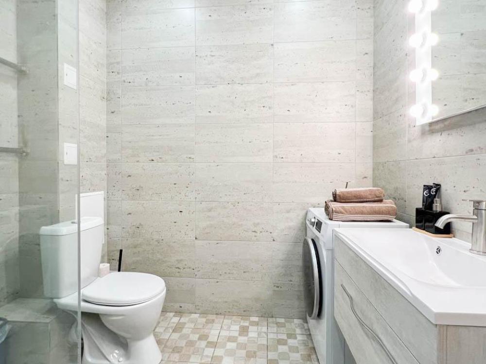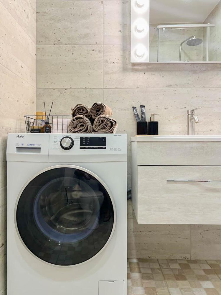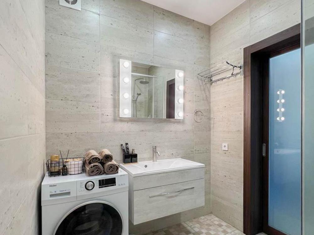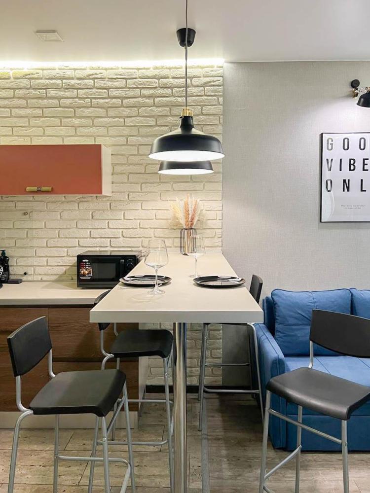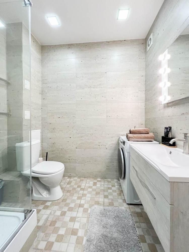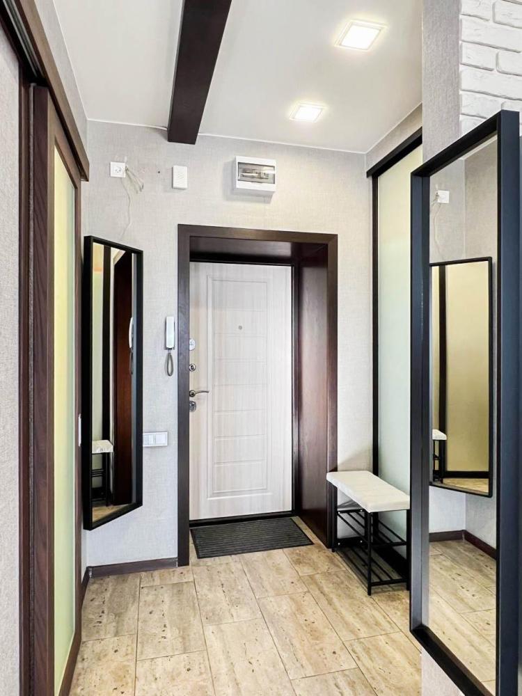 Уютные апартаменты студия, оборудованные всем необходимым для комфортного проживания. В апартаментах: удобная двуспальная кровать с ортопедическим матрасом, зона кухни со всей необходимой техникой и посудой, зона отдыха с диваном. В ванной все необходимые средствами личной гигиены, стиральная машина. Лоджия с видом с 15 этажа на весь город.