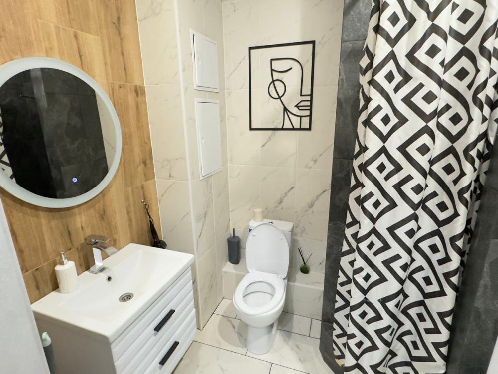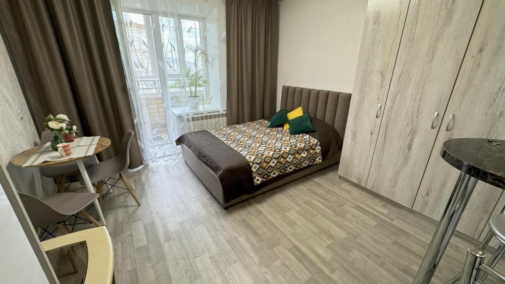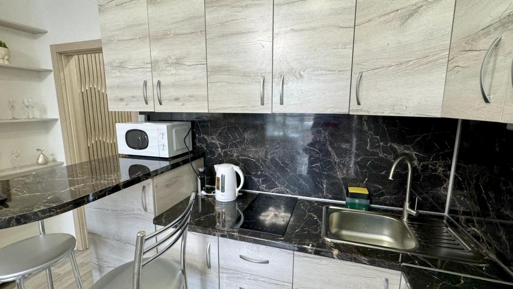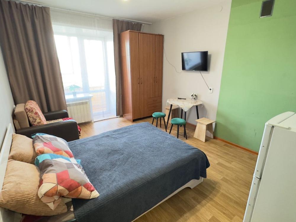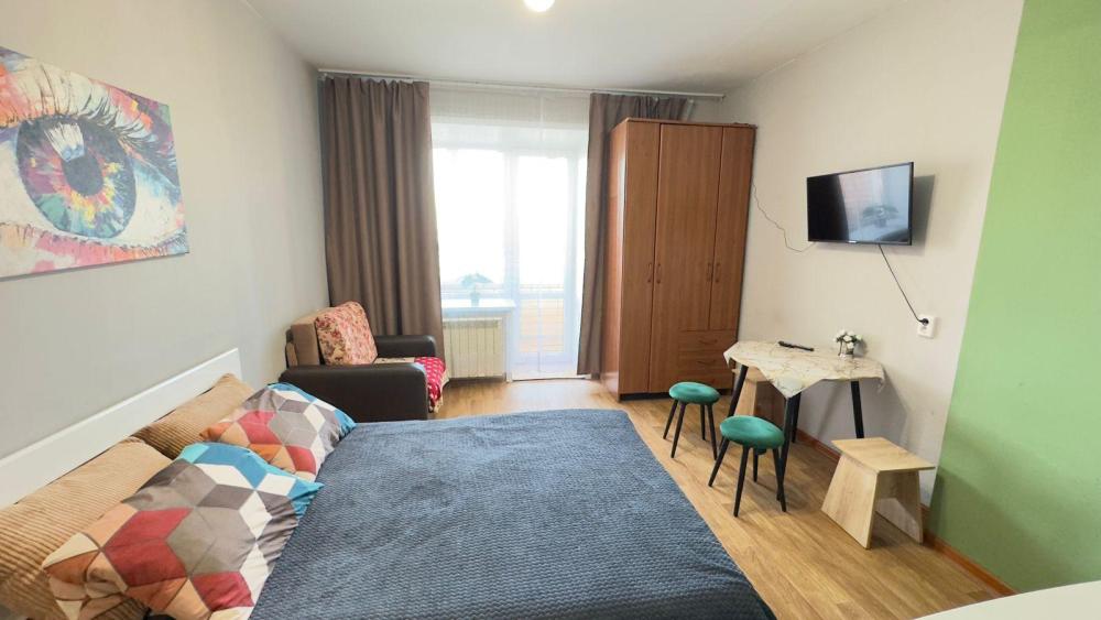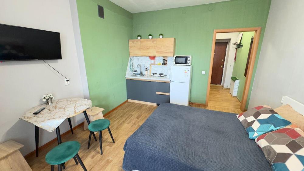 Уютные апартаменты оборудованные всем необходимым для комфортного проживания. Спальные места: двуспальная кровать, кресло-кровать. Оснащение: Телевизор 42 диагональ -андроид, холодильник, плита электрическая одноконфорочная индукция, стол и стулья, консольный столик, зеркала, в ванной с подсветкой, фильтр для питьевой воды Барьер, посуда, фен, постельные комплекты полусинтетика, имеется один хлопковый, элементы декора, стиральная машинка автомат.