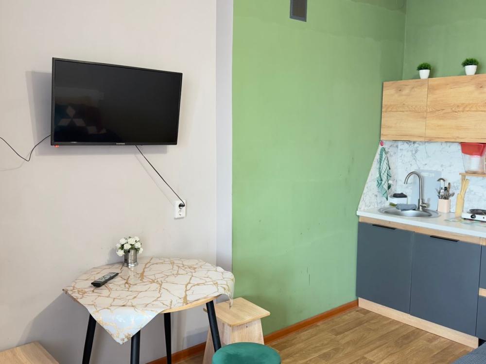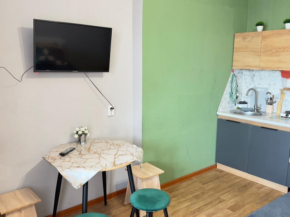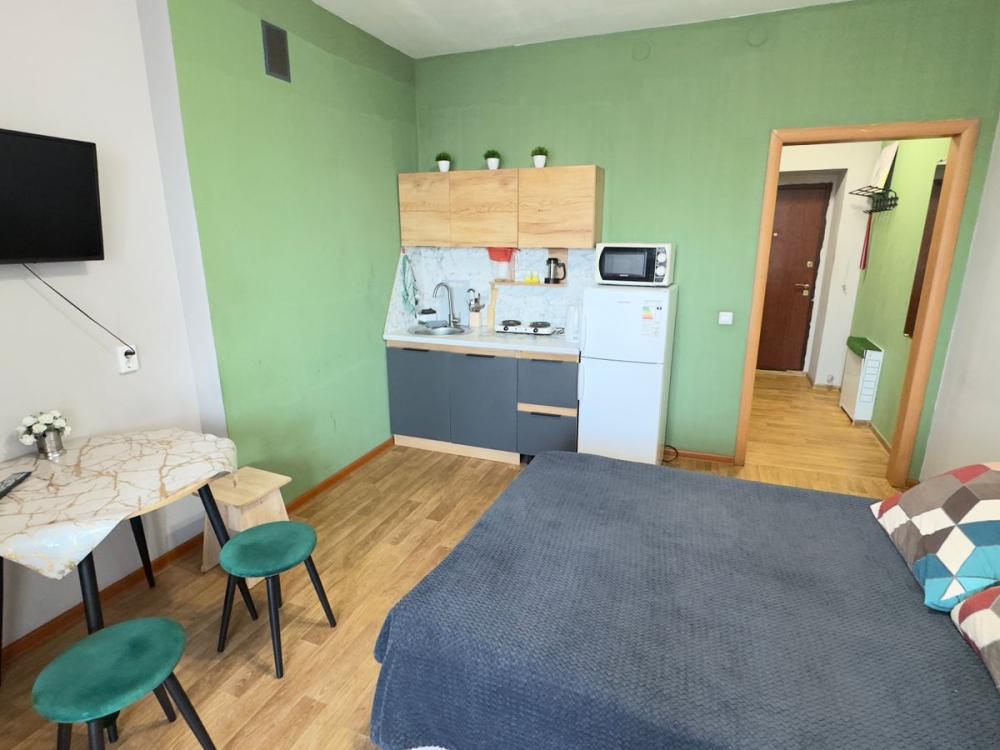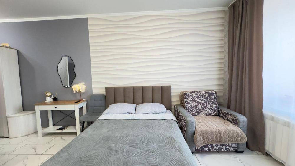 Уютные апартаменты оборудованные всем необходимым для комфортного проживания. Спальные места: двуспальная кровать. Оснащение: Телевизор 42 диагональ -андроид, холодильник, плита электрическая одноконфорочная индукция, стол и стулья, консольный столик, зеркала, в ванной с подсветкой, фильтр для питьевой воды Барьер, посуда, фен, постельные комплекты полусинтетика, имеется один хлопковый, элементы декора, стиральная машинка автомат.