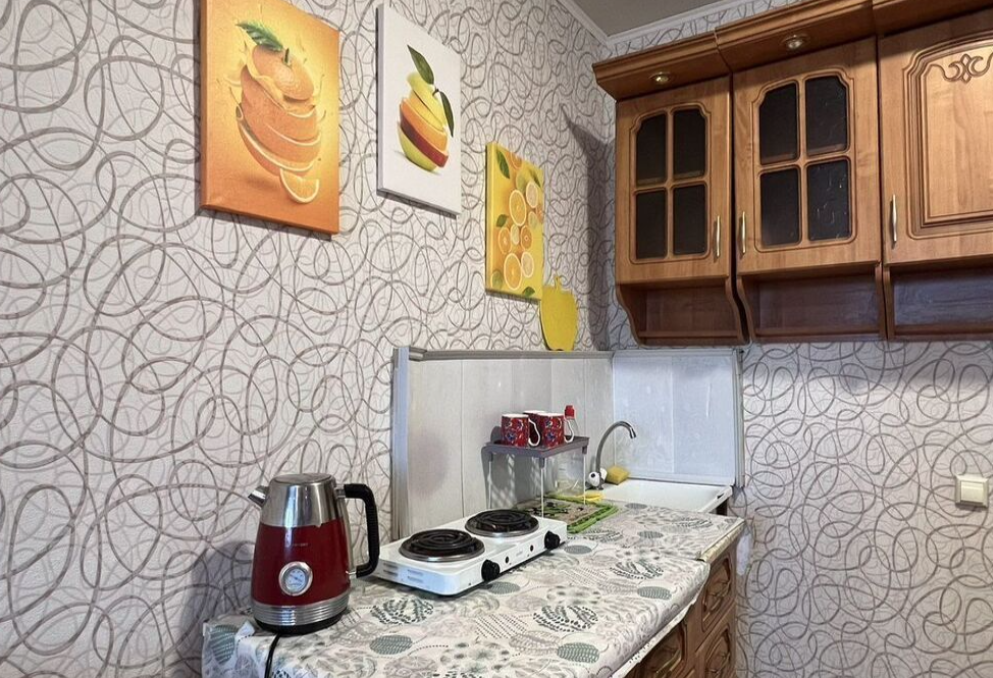 Уютные апартаменты, оборудованные всем необходимы. В квартире: односпальная кровать, кресло-кровать, микроволновая печь, небольшая кухонная зона, плита, чайник, телевизор, Wi-Fi, балкон, постельное белье полиэстер, подушки и одеяла, полотенца.