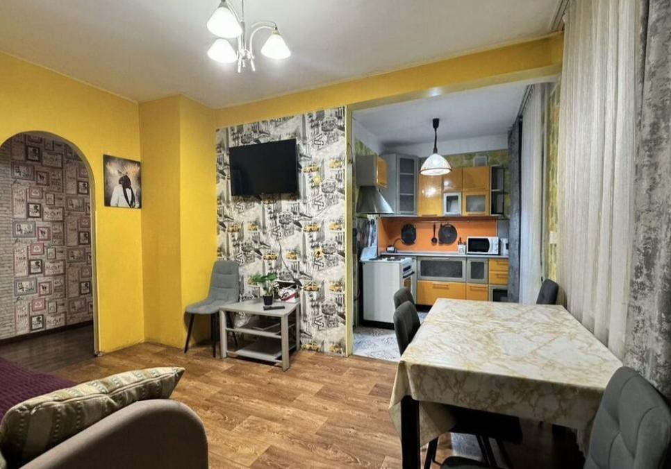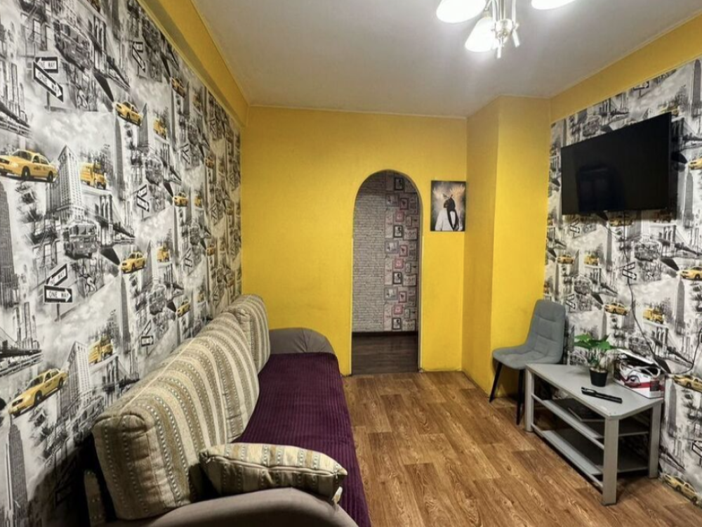 Уютные апартаменты, оборудованные всем необходимым. Спальные места: две двуспальные кровати, диван раскладной. Квартира оснащена современной бытовой техникой, необходимой для проживания: электрическая плита, чайник, плазменный телевизор, стиральная машинка автомат, холодильник. Для хранения вещей имеется шкаф. Также имеется балкон. Постельное белье полиэстер, подушки, одеяла, полотенца.