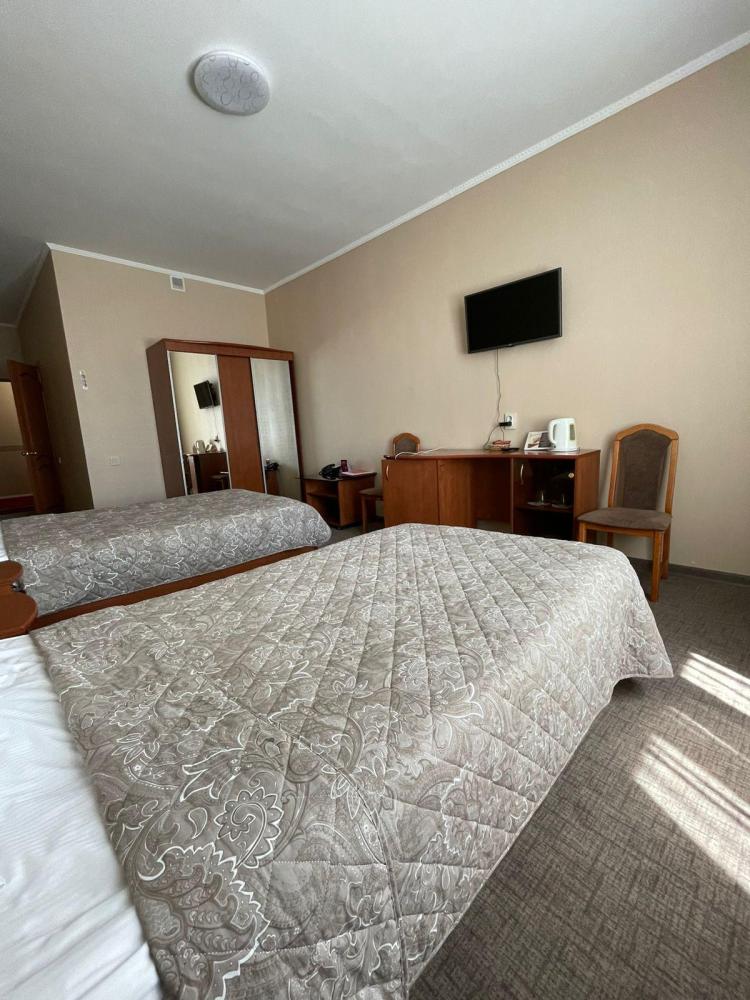 Просторные номера со всем необходимым для комфортного и уютного отдыха. Номера оснащены всеми современными удобствами: две удобные кровати телевизор, холодильником, мягкая мебель и тд. Удобства: ТВ, Душ или ванна, набор полотенец, Телефон, Рабочая зона, Кухонные принадлежности, Тапочки, Фен (по запросу), Холодильник.