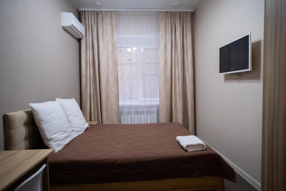 В номере есть: одна двуспальная кровать, прикроватная тумбочка, Smart TV, бесплатный Wi Fi, кондиционер, письменный стол, стул, шкаф, сейф, постельное белье, полотенце лицевое и банное. Общий сан.узел и душ в секции на 3 номера.