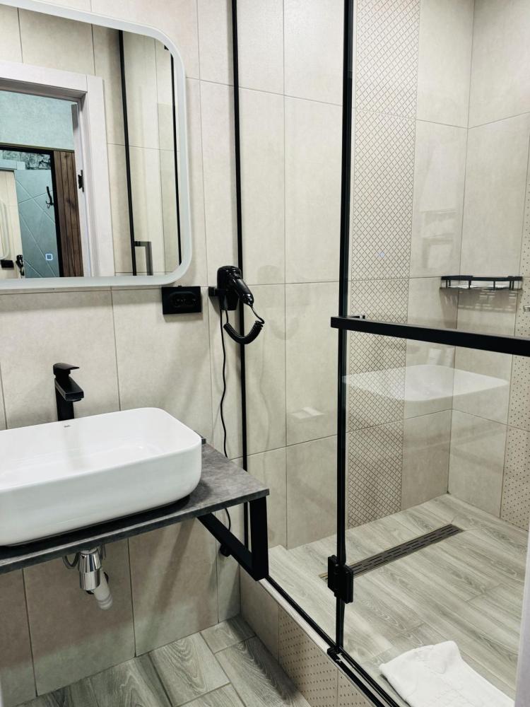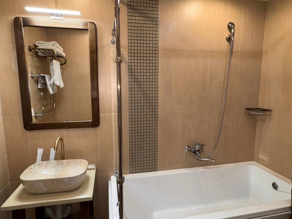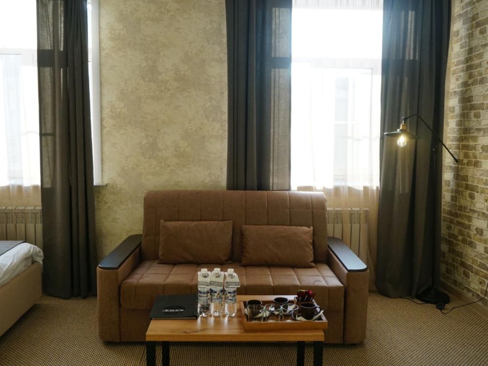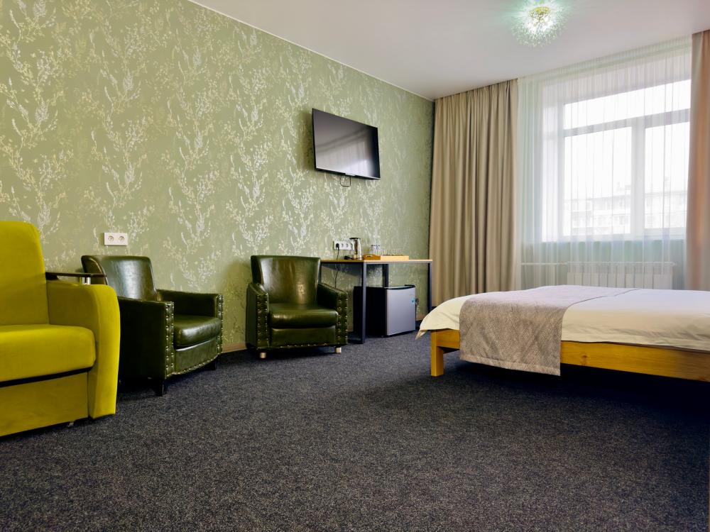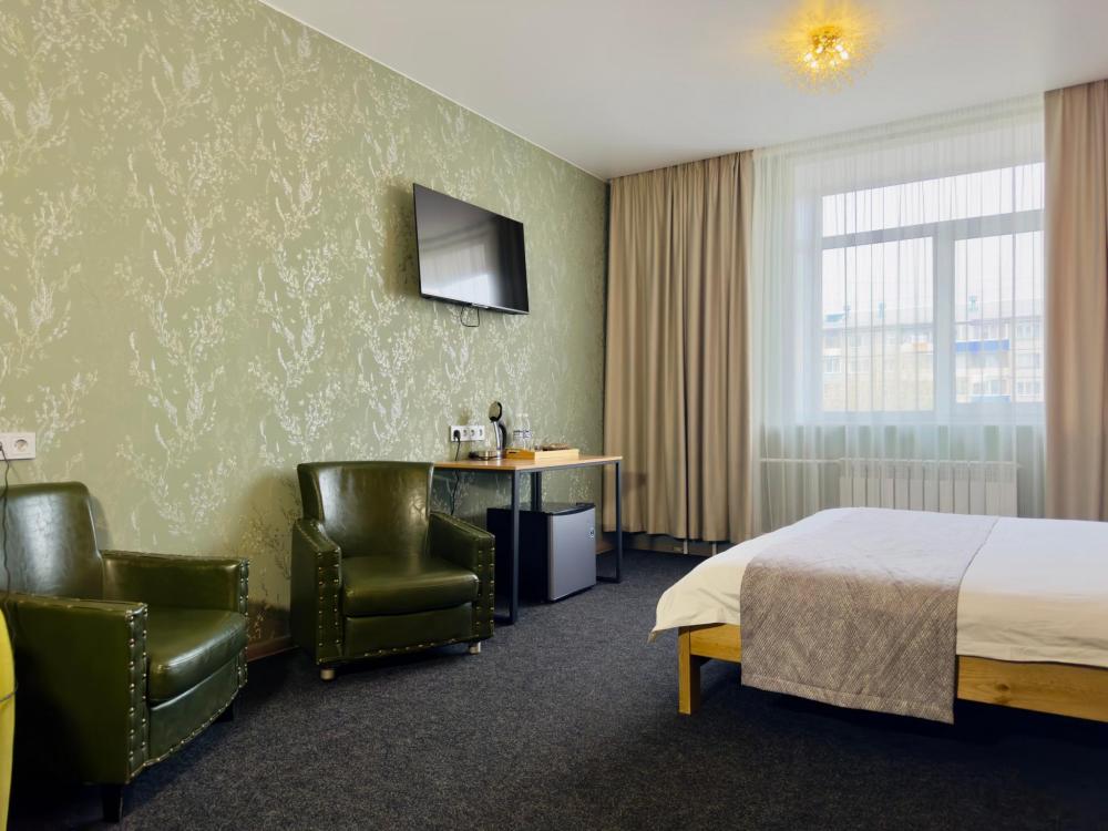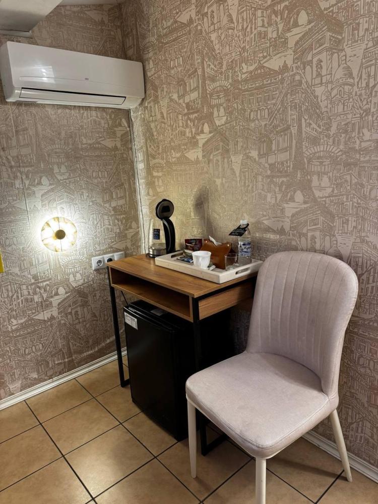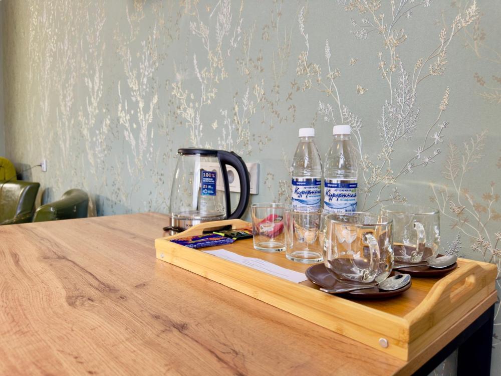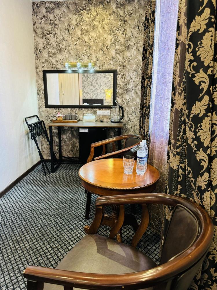 Улучшенный номер стандарт: двуспальная кровать гигиенические принадлежности, вода в бутылках в подарок, одноразовые тапочки, мини-бар, чайник, Wi-Fi махровые халаты кондиционер чайный и кофейный наборы